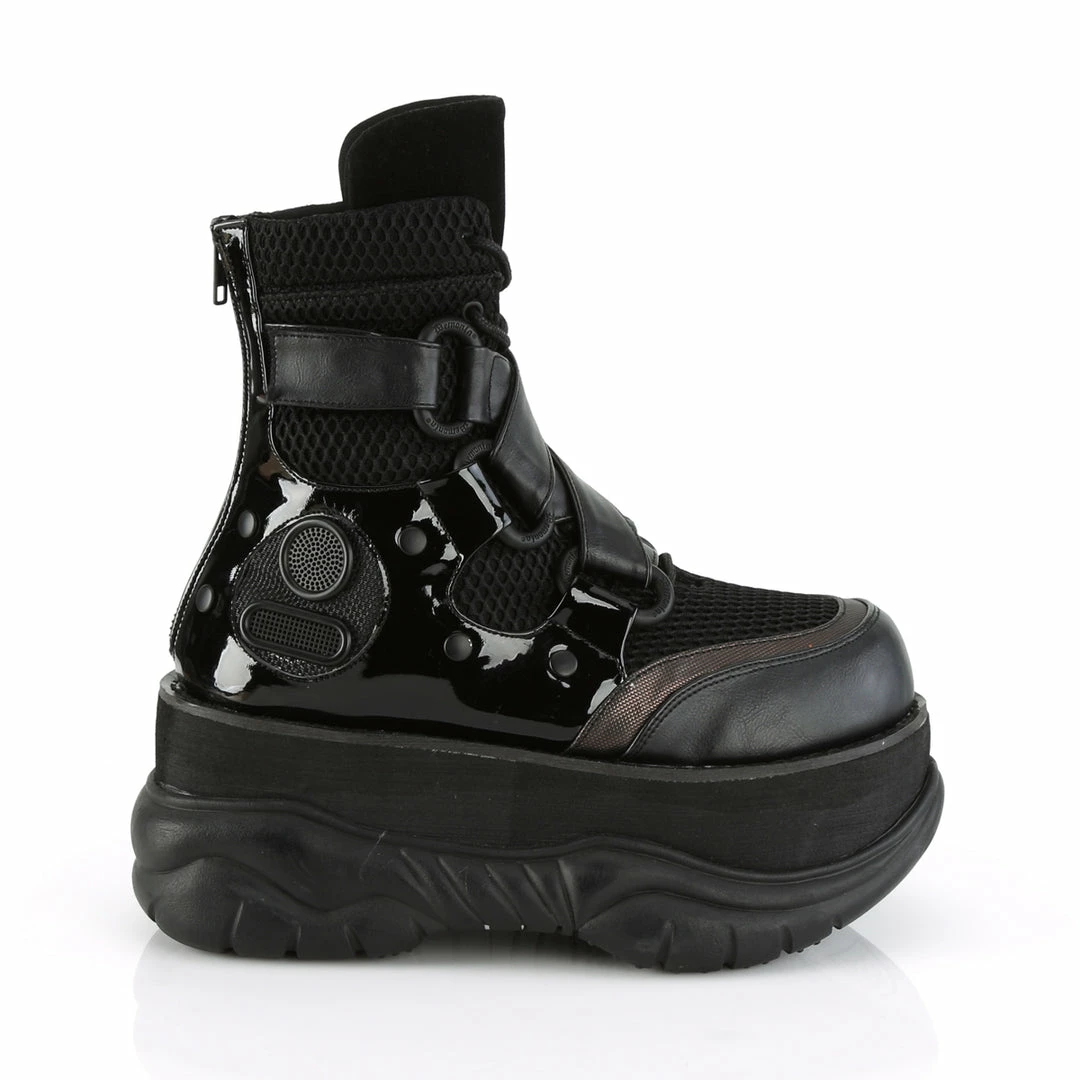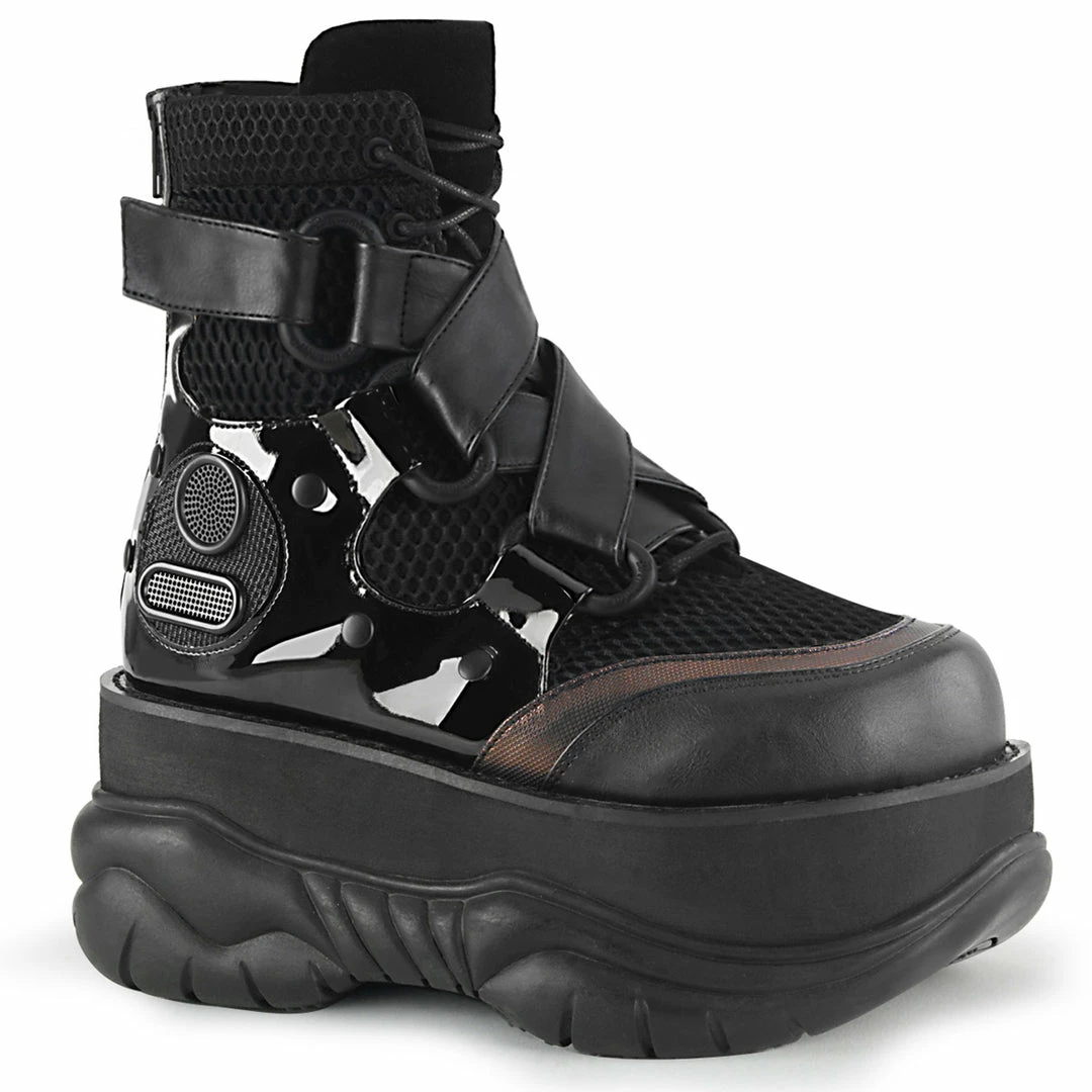 3″ (76mm) Platform Lace-Up Criss-Cross Strap Ankle Boot Featuring Hook N’ Loop Closure & Ventilator Detail on Outside, Back Zip Closure