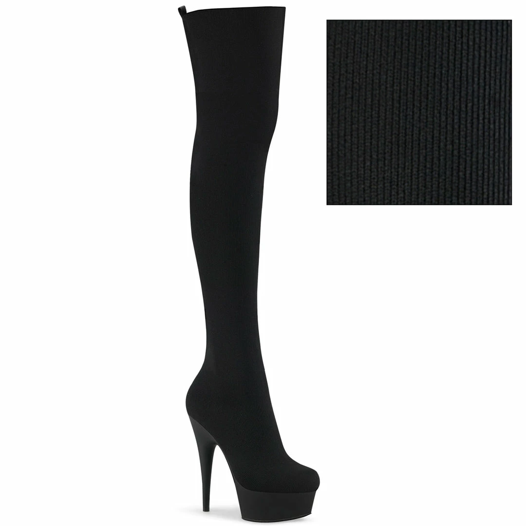 6″ (152mm) Heel, 1 3/4″ (45mm) Platform Pull-on Stretch Knit Thigh High Boot