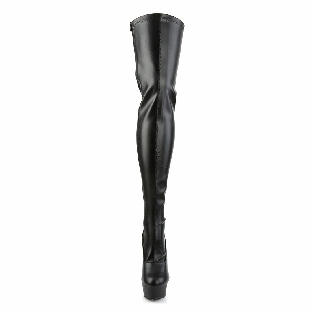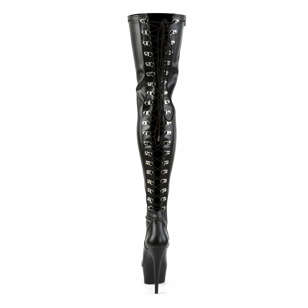 6″ (15.2cm) Stiletto Heel, 1 3/4″ (4.5cm) Platform Side Lace-Up Back Thigh High Boot, Full-Length Inside Zip Closure
