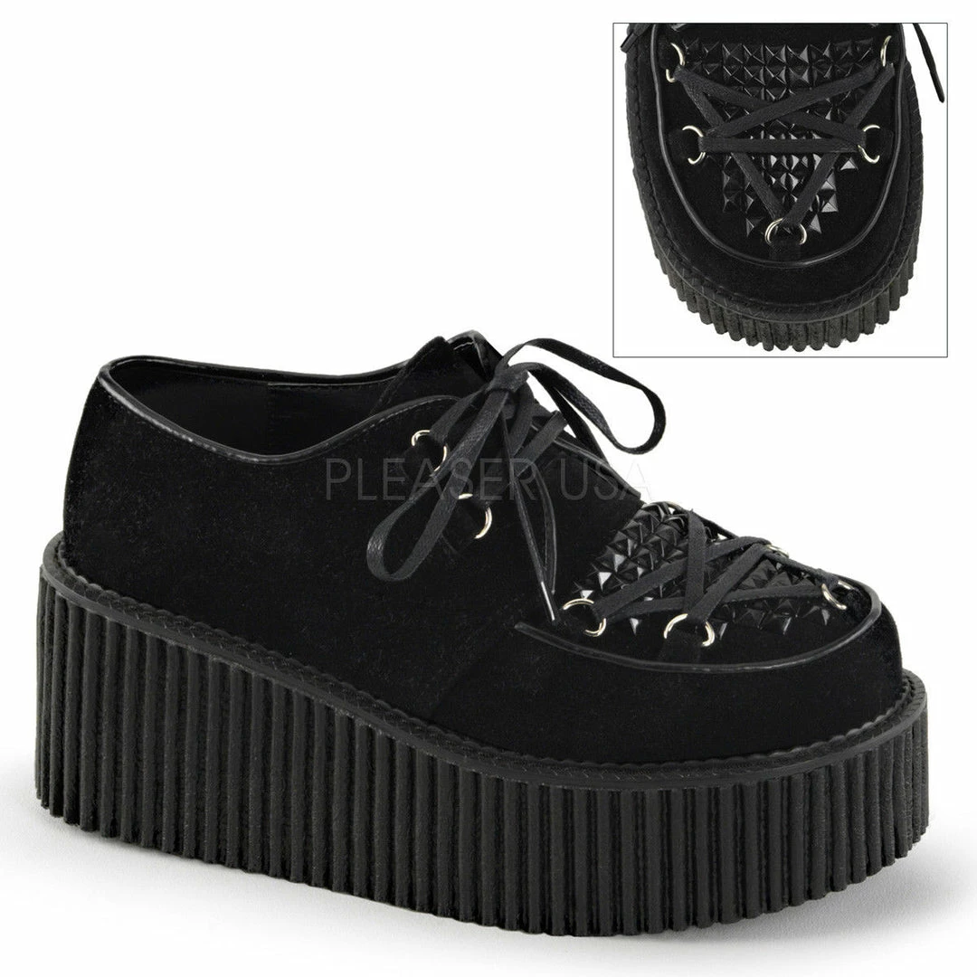 3″ (7.6cm) Platform Creeper with Heart O-Ring & Studded Straps on Vamp, D-Ring Lace, Interwoven Apron and Piping Detail