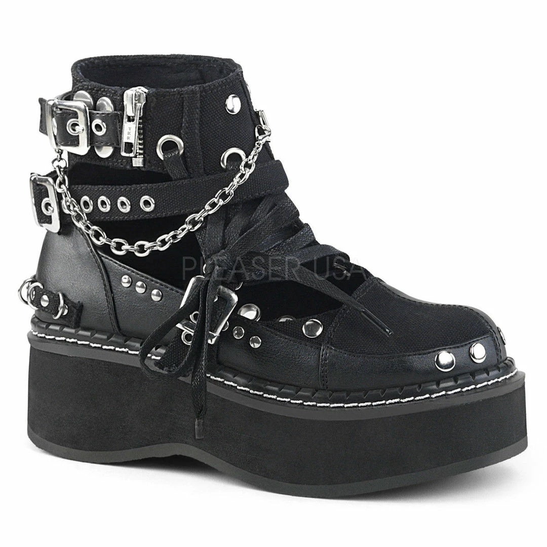 2″ (51mm) Platform Buckle Strap Ankle Bootie Featuring Outside Cutout W/ Strap, Chain, Stud and Lace Detailing, Buckle & Snap Closure