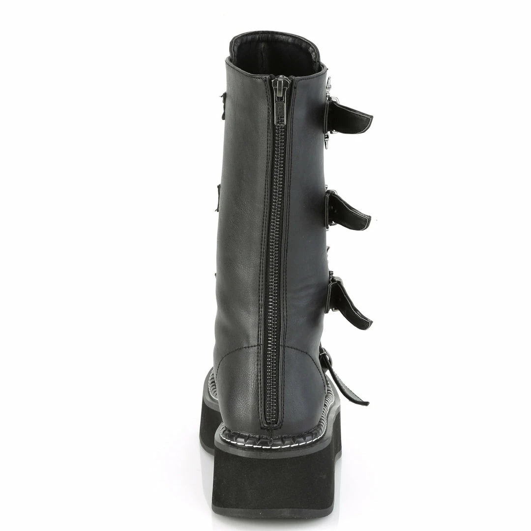 2″ (51mm) Platform Lace-Up Front Mid-Calf Boot Featuring Bat Buckle Straps, Back Metal Zip Closure