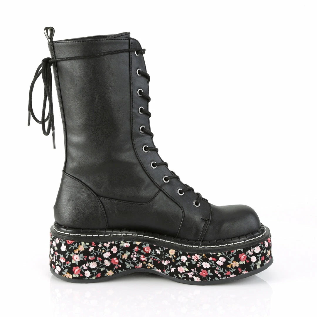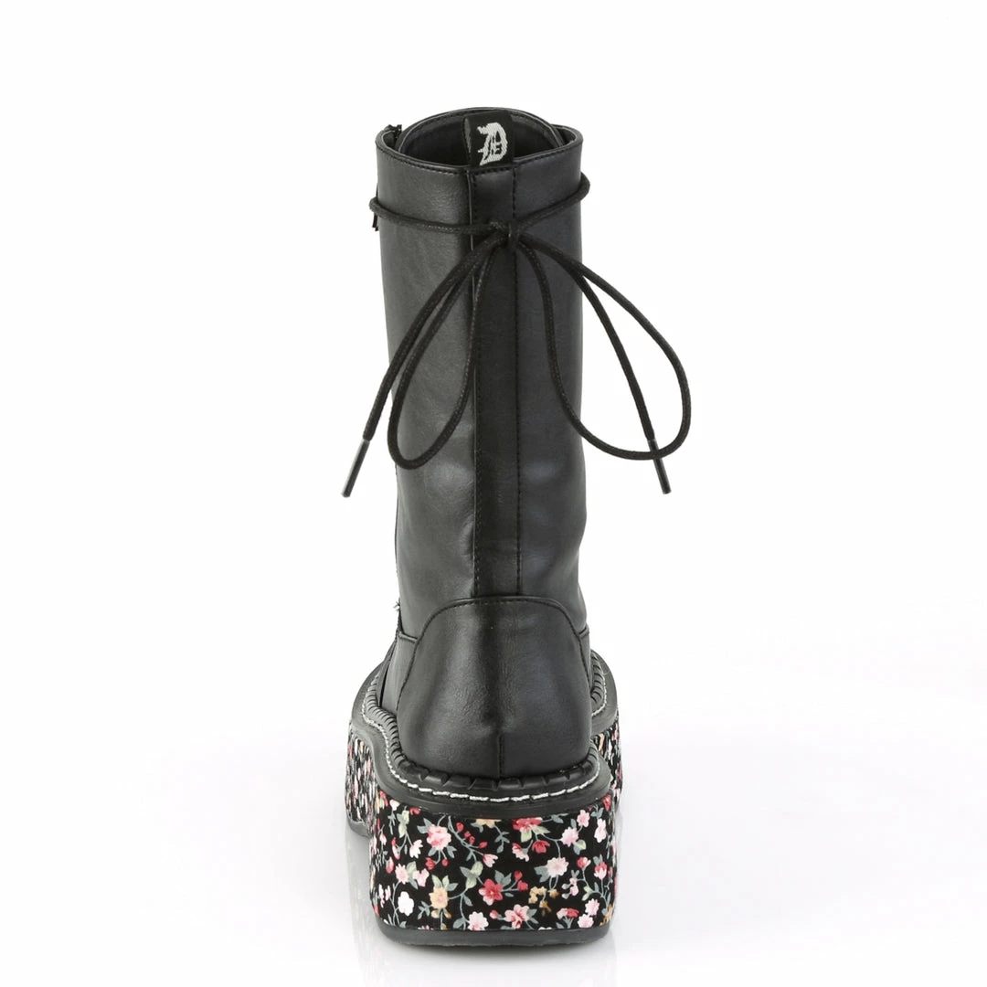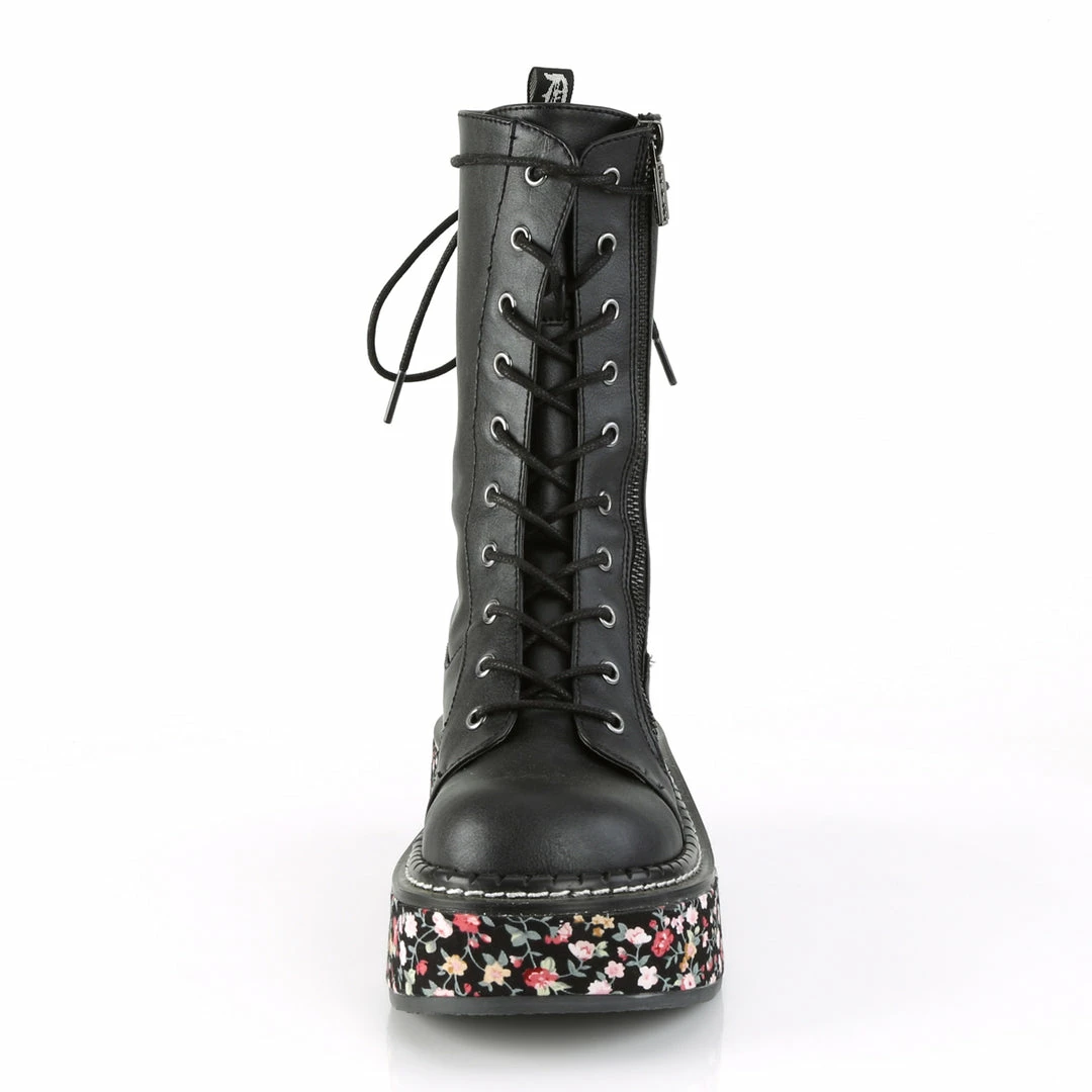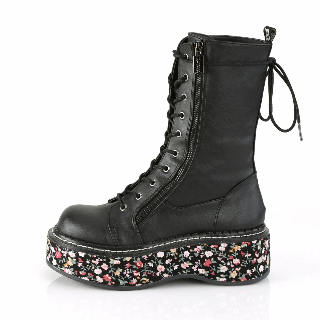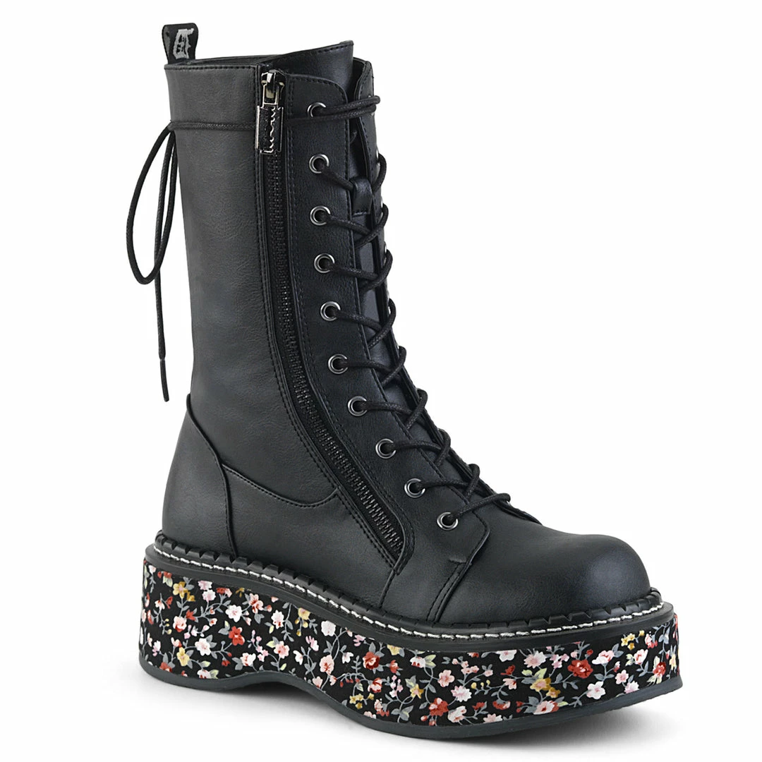 2″ Cheetah Print Pu Wrapped Platform Mid-Calf Lace-Up Boot W/ Outer Metal Zipper & Razor Blade Zipper Pull