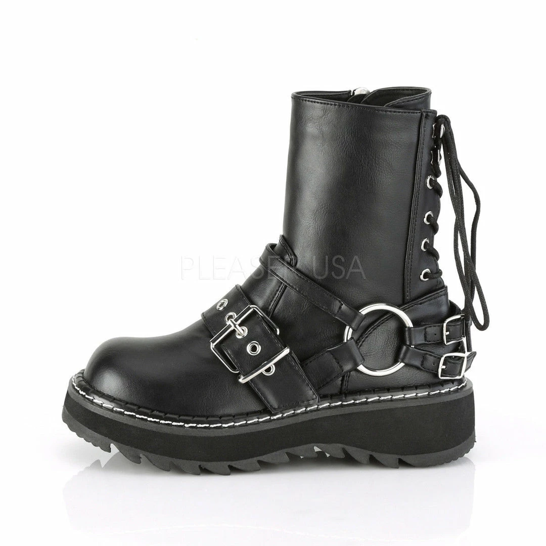 1 1/4″ (32mm) Platform Rear Lace-Up Ankle Boot W/ Contrast White Stitching at the Welt, Inside Zip Closure