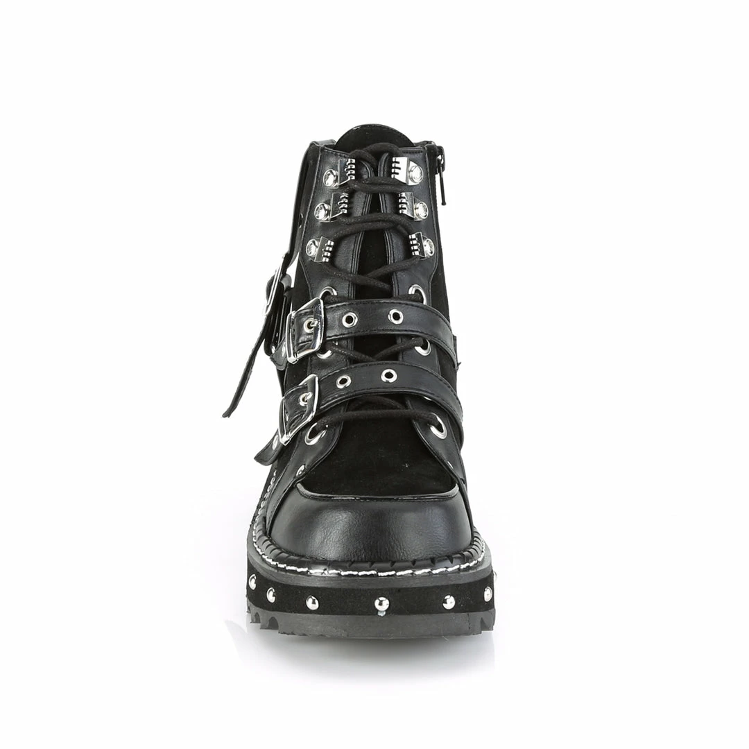 DEMONIA Lilith-278 Women’s Black Vegan Leather Suede Goth 1.25″ Platform Boots