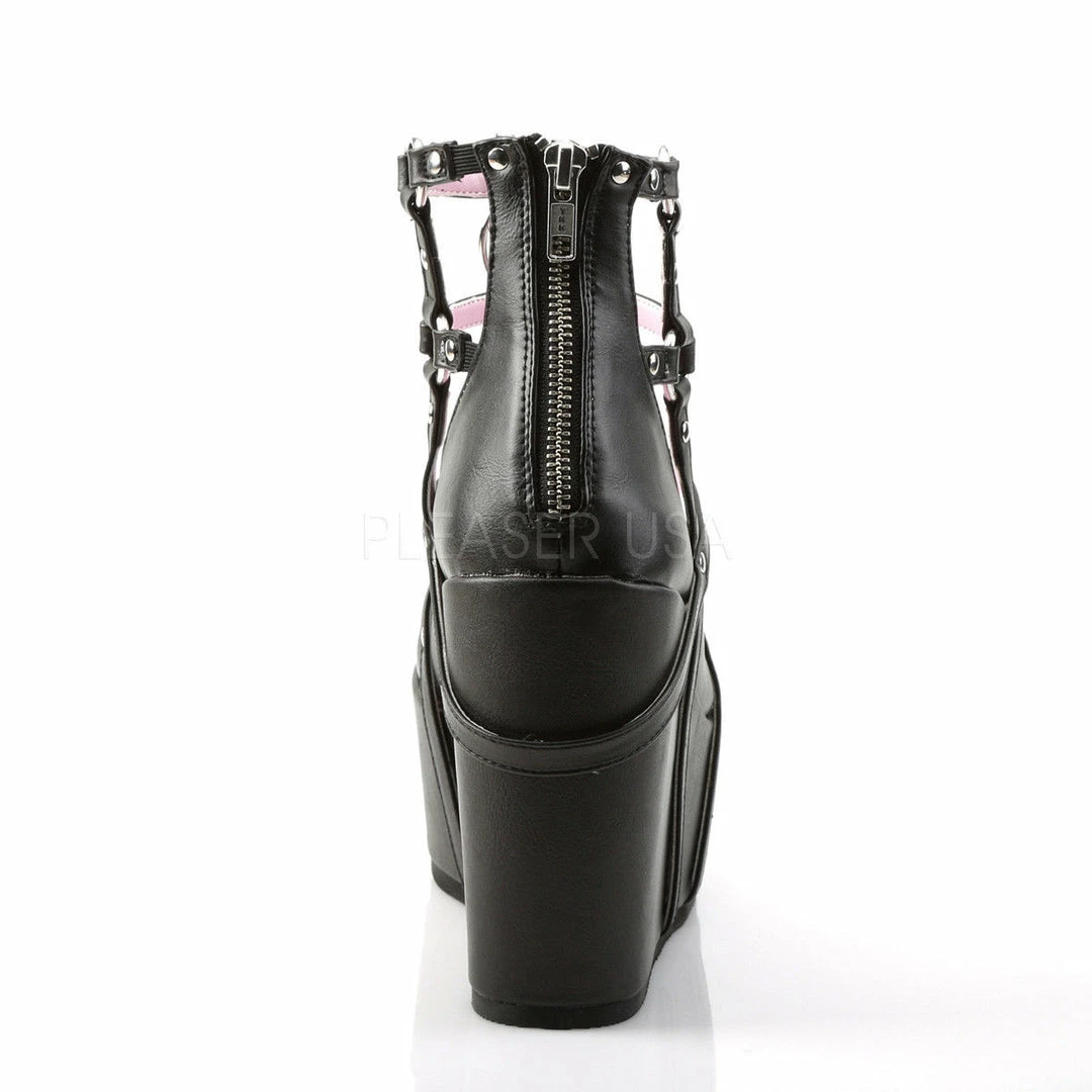 5″ (12.7cm) Wedge Platform Cage Bootie Featuring Studding, Multi-Sized O-Rings & Pentagram Charm