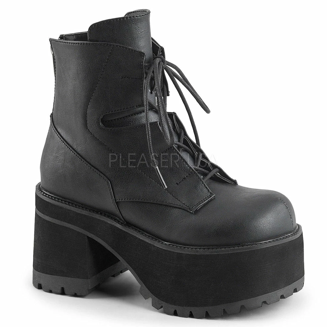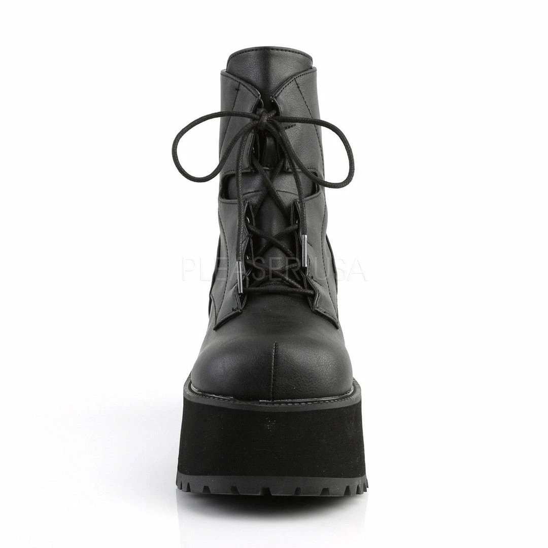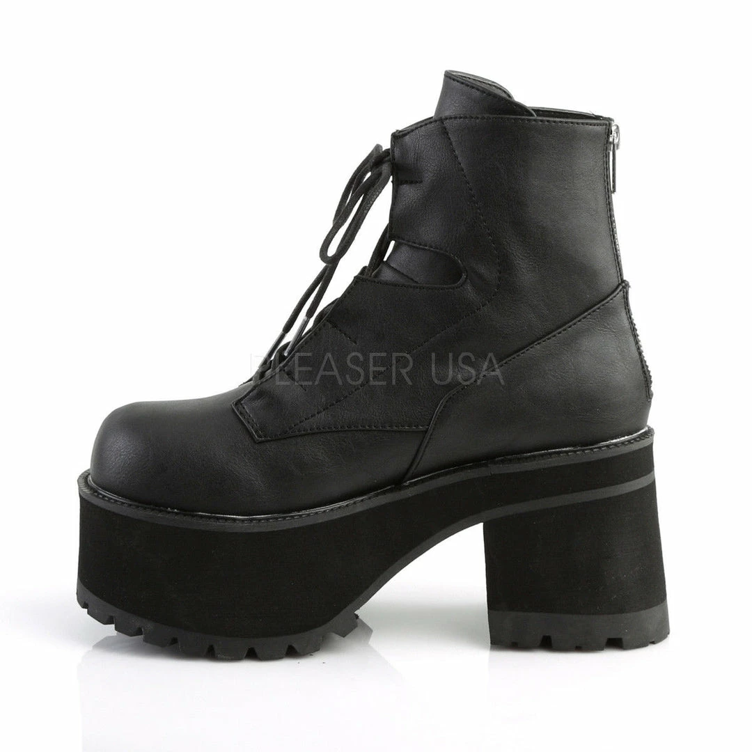 3 3/4″ (95mm) Heel, 2 1/4″ (57mm) Platform Lace-Up Front Ankle Boot, Inside Zip Closure