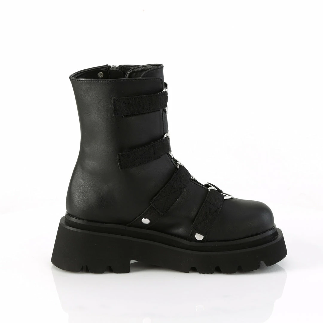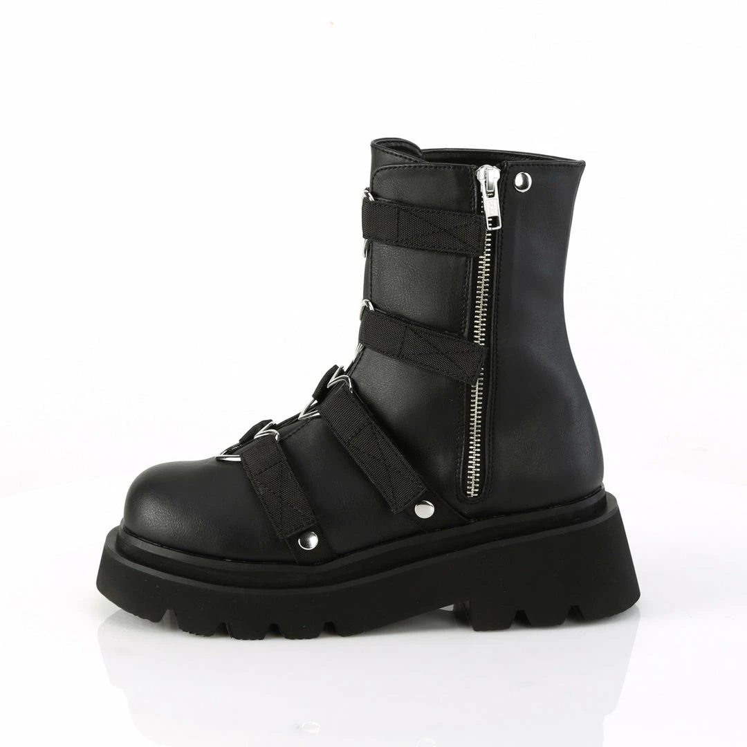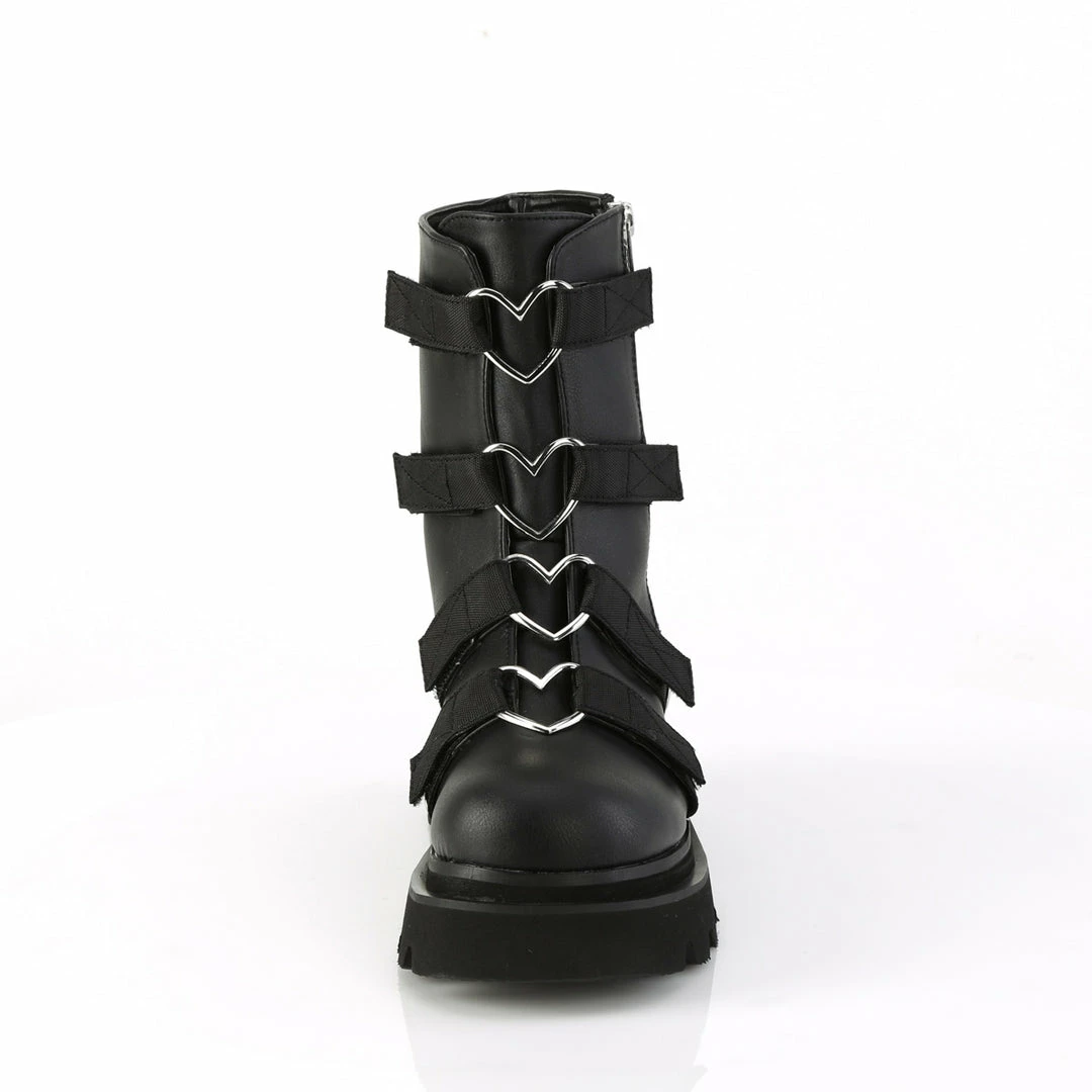 2 1/2″ (64mm) Tiered Platform Strappy Ankle Boot Featuring Metal Heart Rings & Outer and Inner Nylon Hook N Loop Straps, Outer Side Metal Zip Closure