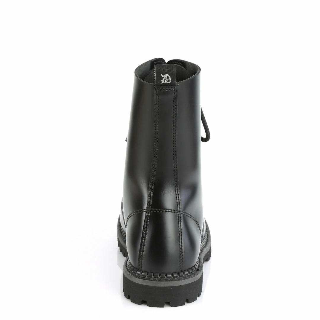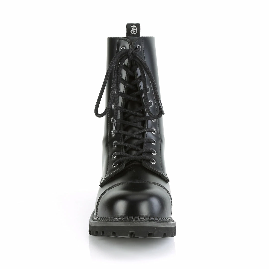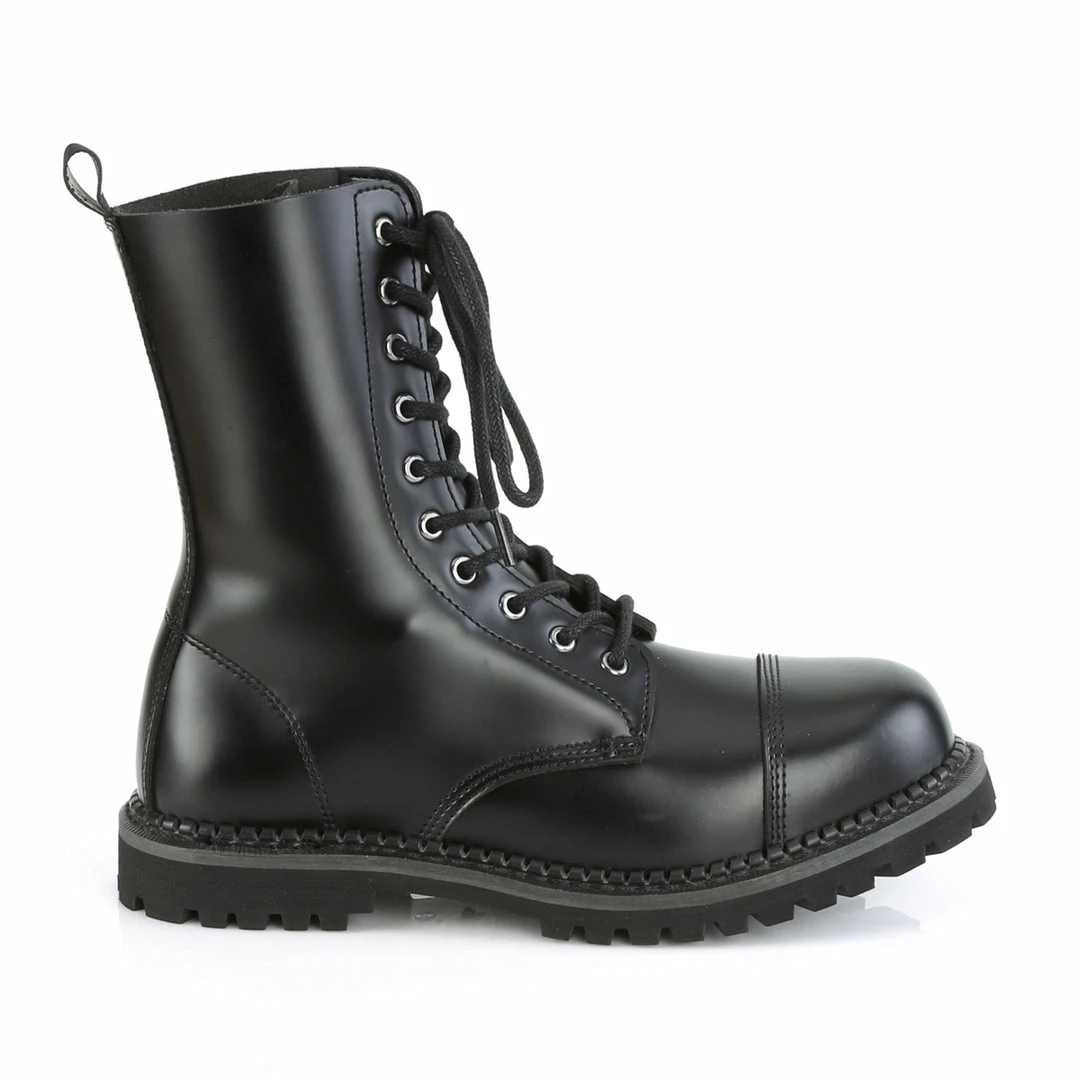 Demonia 10 Eyelet Unisex Genuine Leather Steel Toe Lace-Up Ankle Boot, Rubber Sole