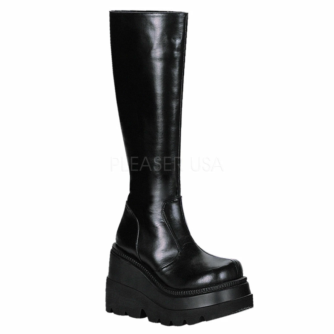 4 1/2″ (11.4cm) Stacked Wedge Platform Knee High Boot Full Inner Side Zipper