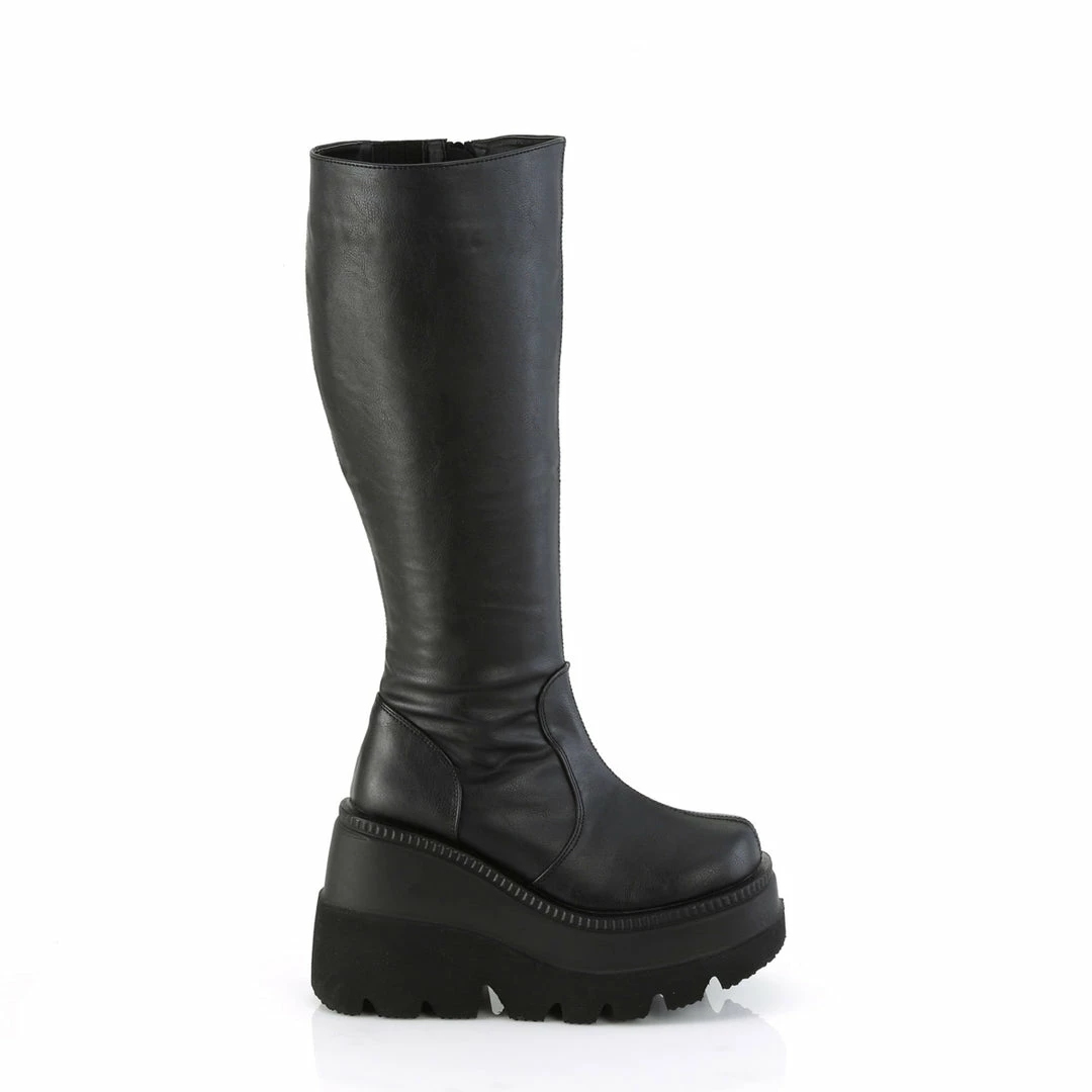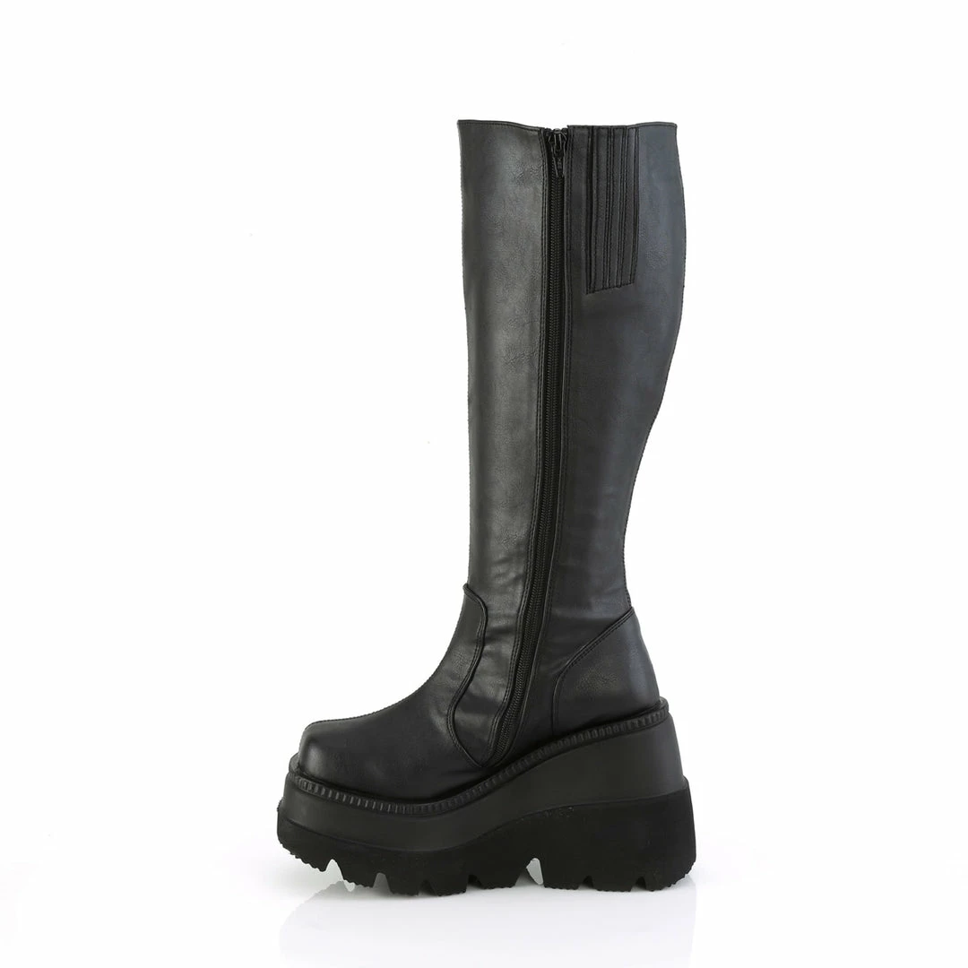 4 1/2″ (114mm) Wedge Platform Wide Calf Knee High Boot , Full Length Inner Side Zip Closure