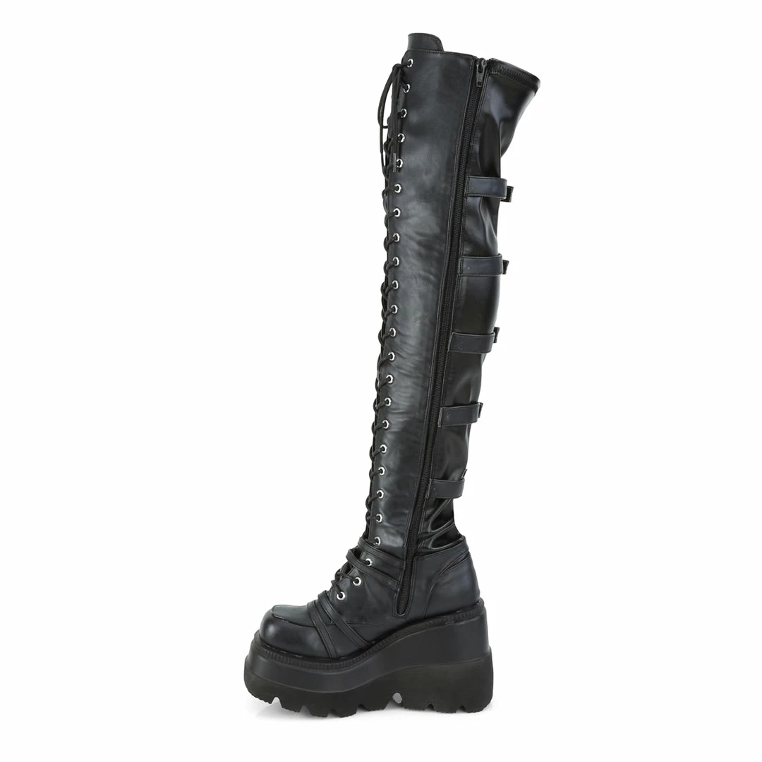 4 1/2″ (11.4cm) Stacked Wedge Platform Knee High Boot Full Inner Side Zipper