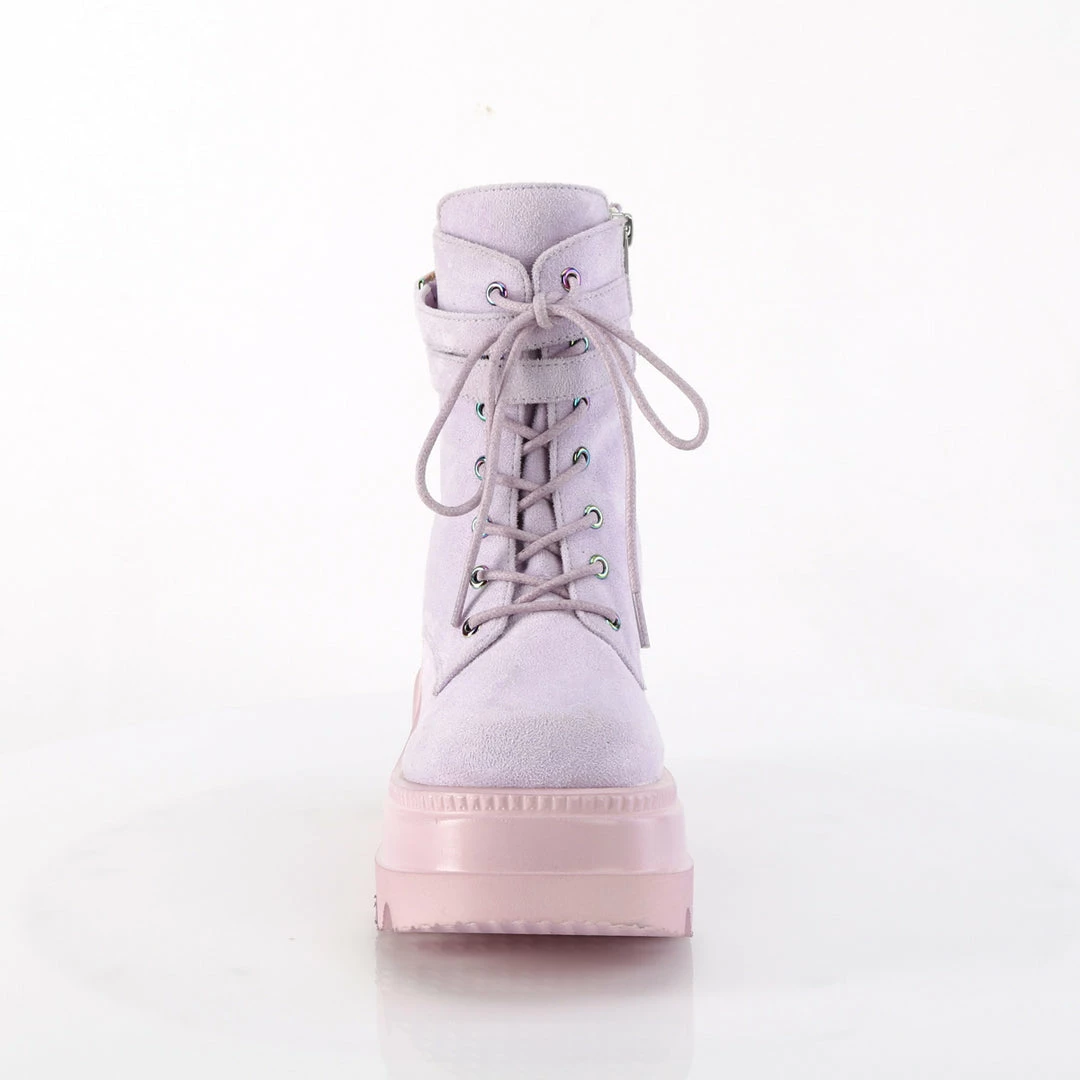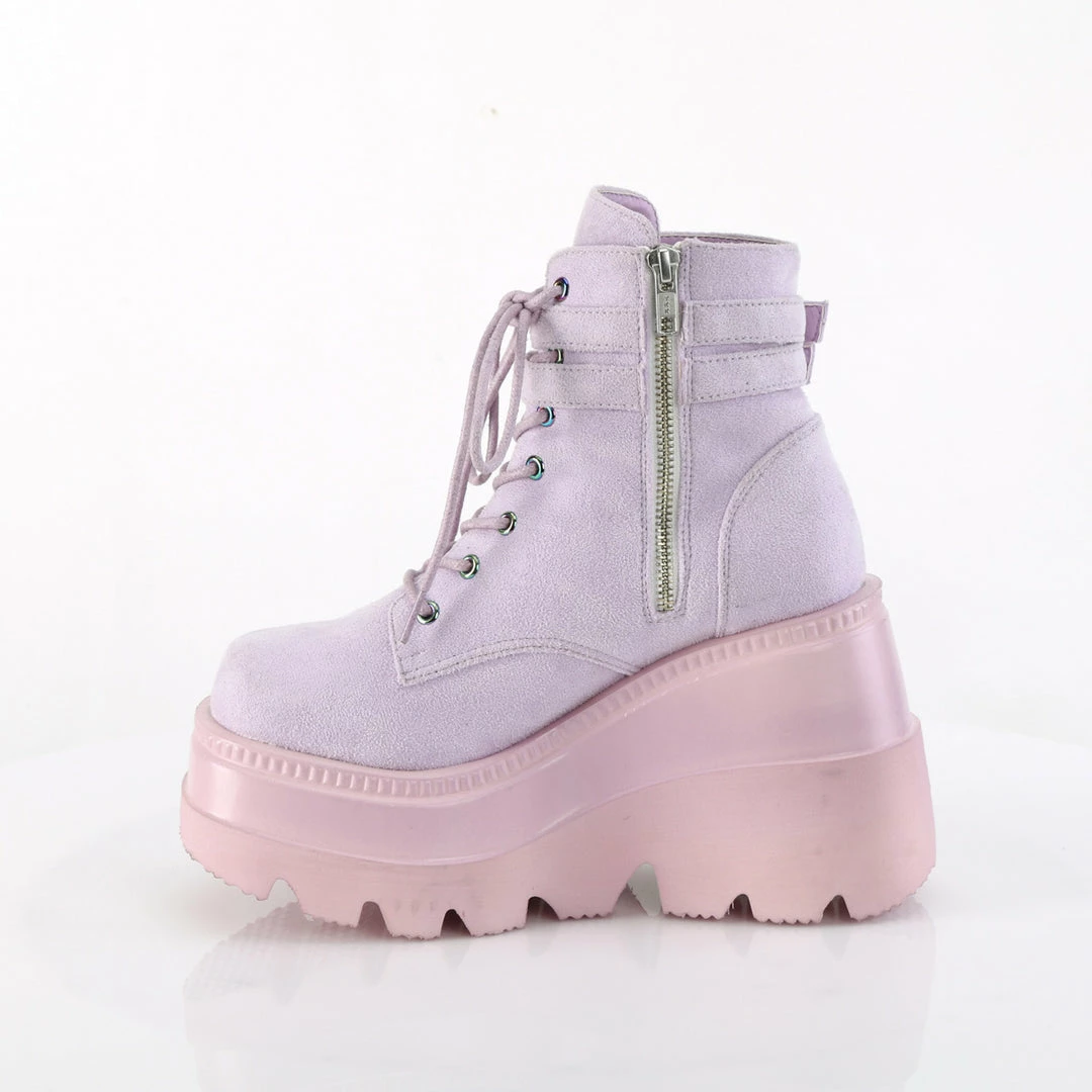 4 1/2″ (114mm) Wedge Platform Lace-Up Front Ankle Boot w/ Double Buckled Ankle Straps, Inside Zip Closure