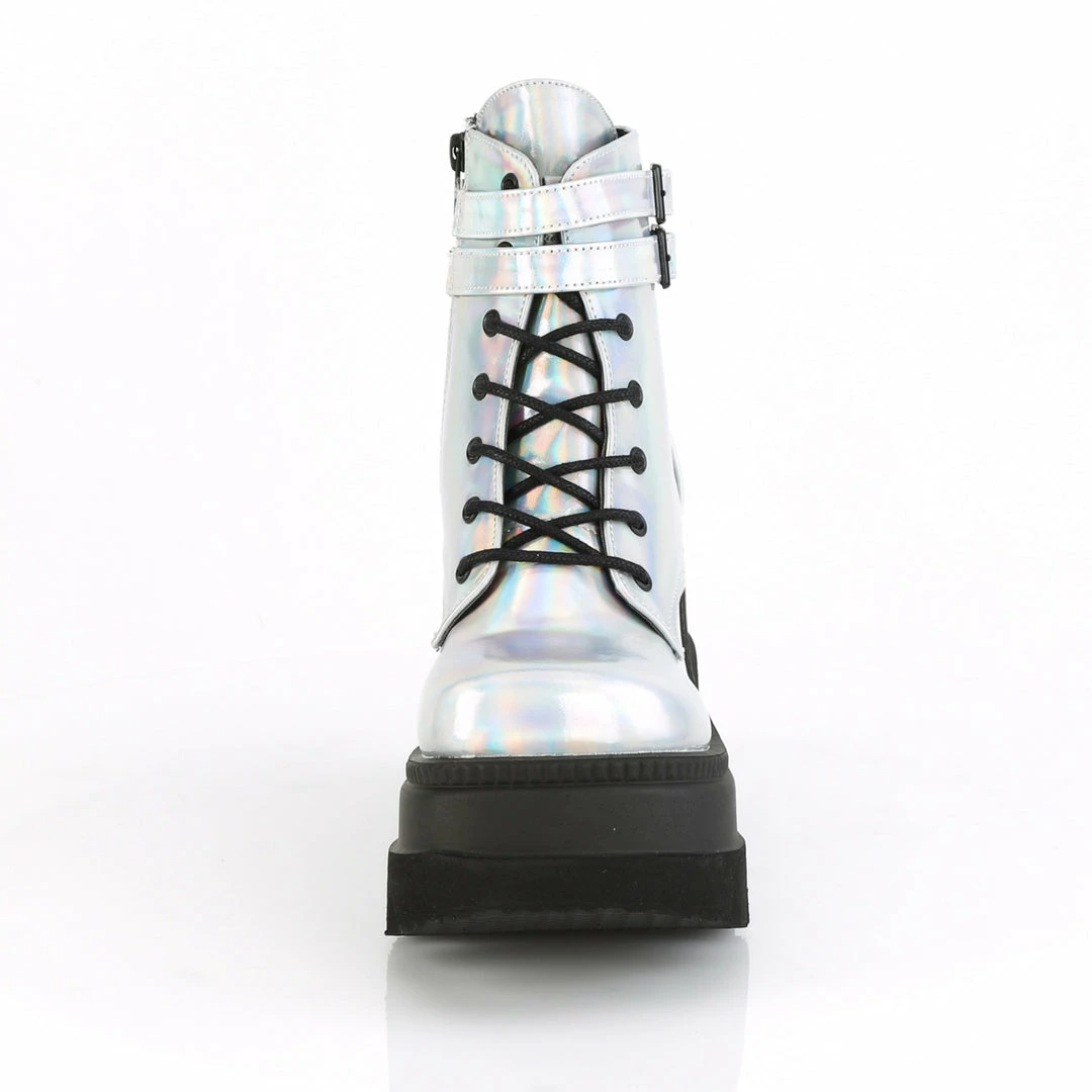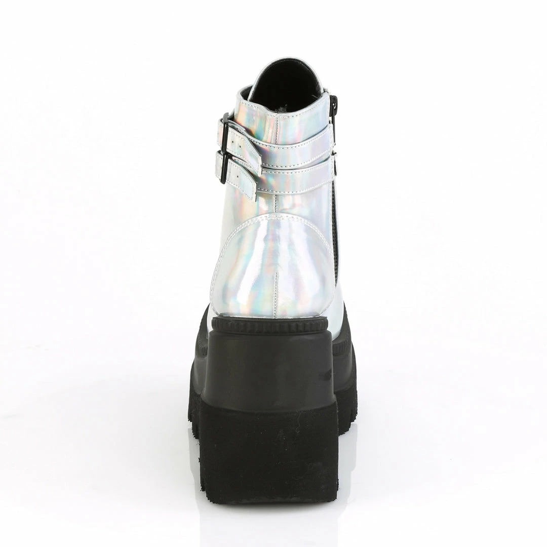 4 1/2″ (114mm) Wedge Platform Lace-Up Front Ankle Boot w/ Double Buckled Ankle Straps, Inside Zip Closure