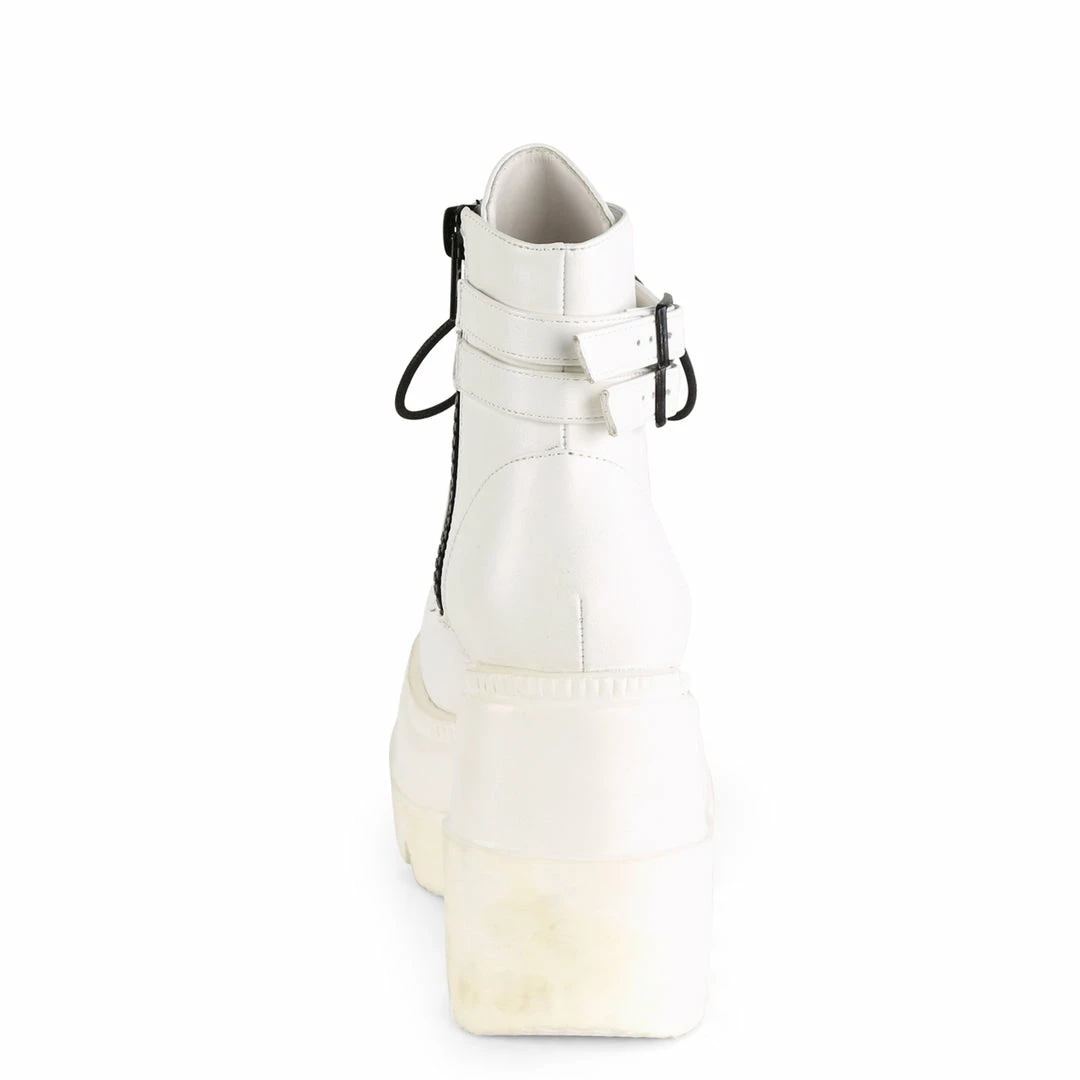 4 1/2″ (114mm) Wedge Platform Lace-Up Front Ankle Boot w/ Double Buckled Ankle Straps, Inside Zip Closure