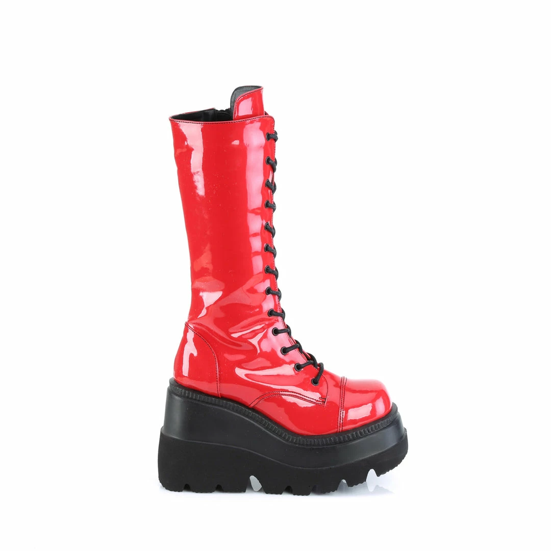 4 1/2″ (114mm) Wedge Platform Lace-Up Front Mid-Calf Boot, Full-Length Inside Zip Closure