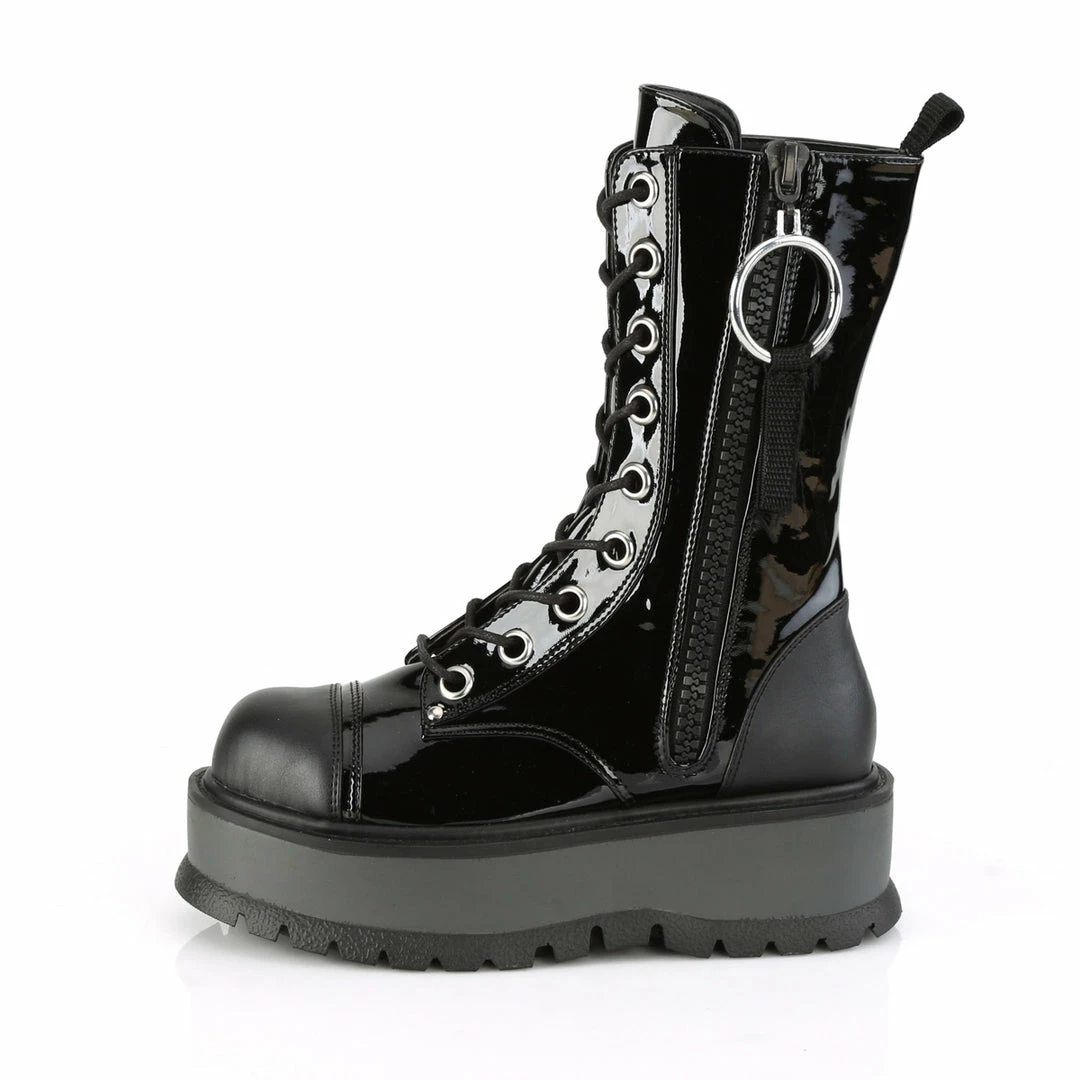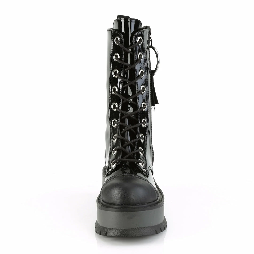 2″ (51mm) Platform Lace-Up Front Mid-Calf Boot, W/ Oversize O-Ring Zipper Pull, Outside Zip Closure