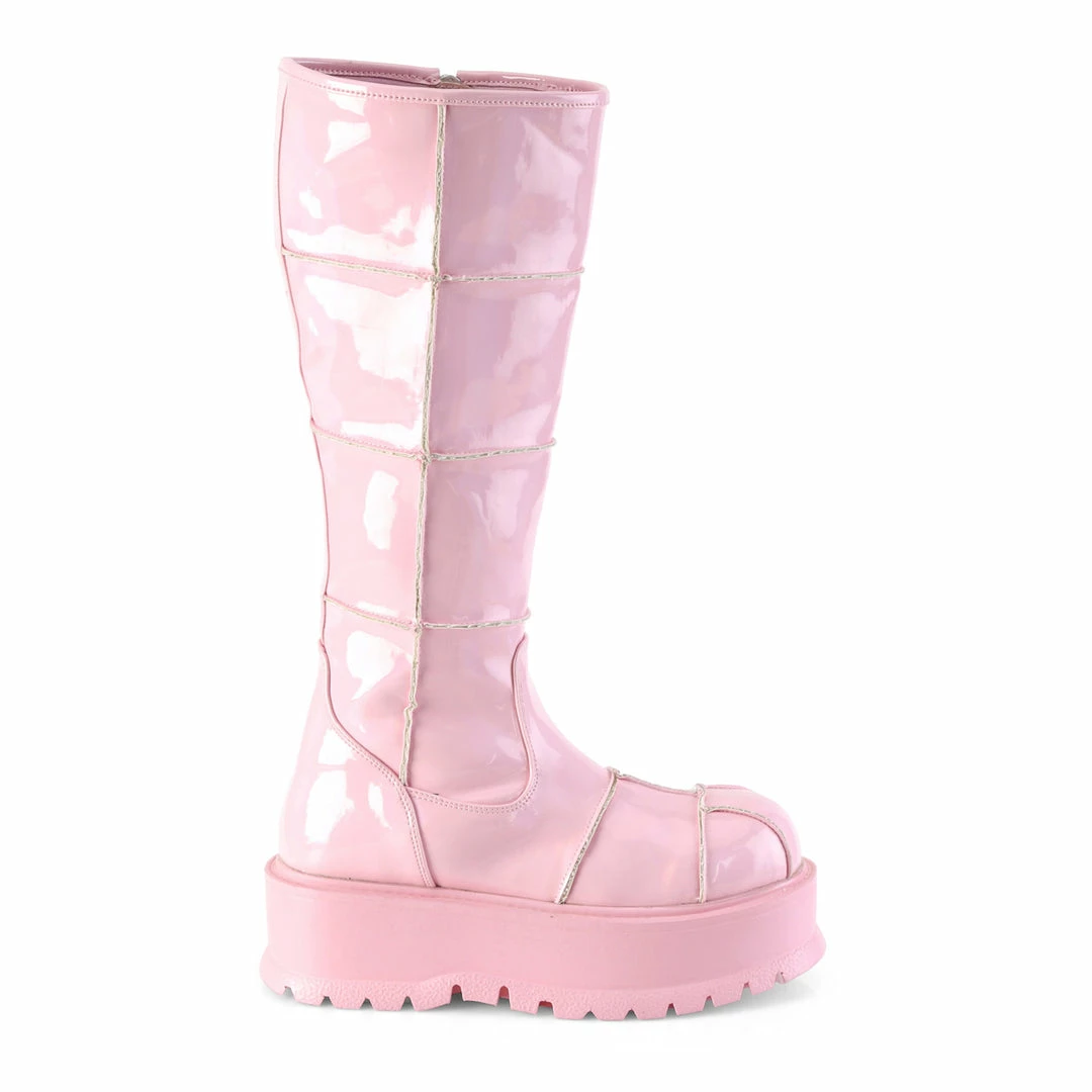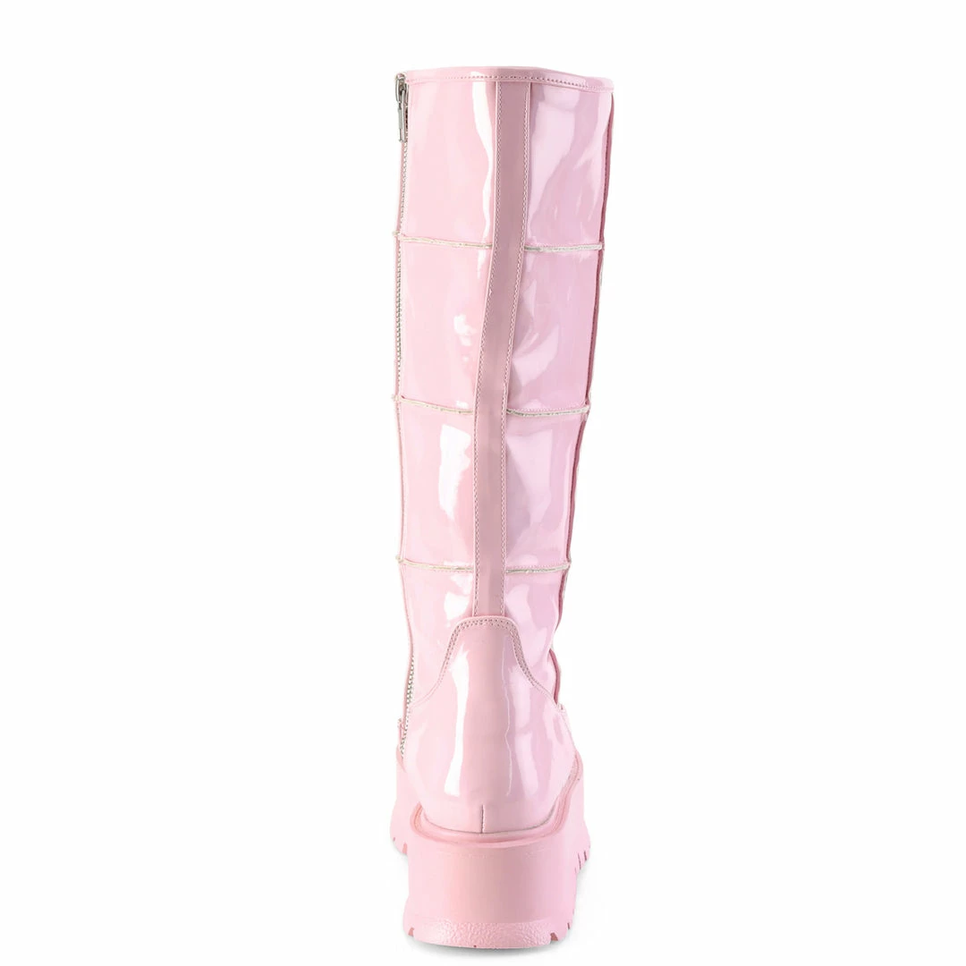 2″ (51mm) Platform Knee High Boot w/ Patching Details, Full Length Inner Side Metal Zip Closure