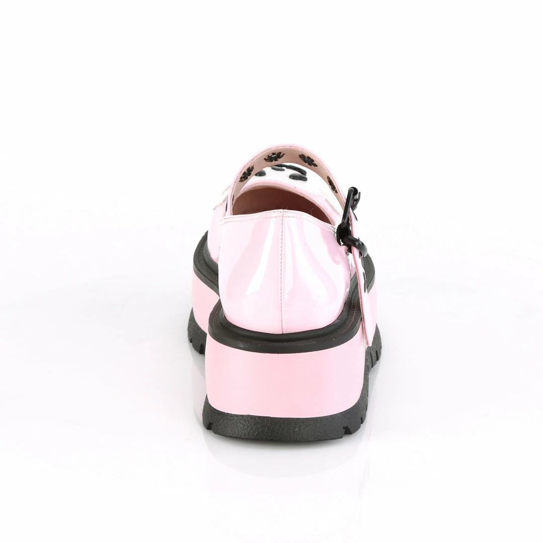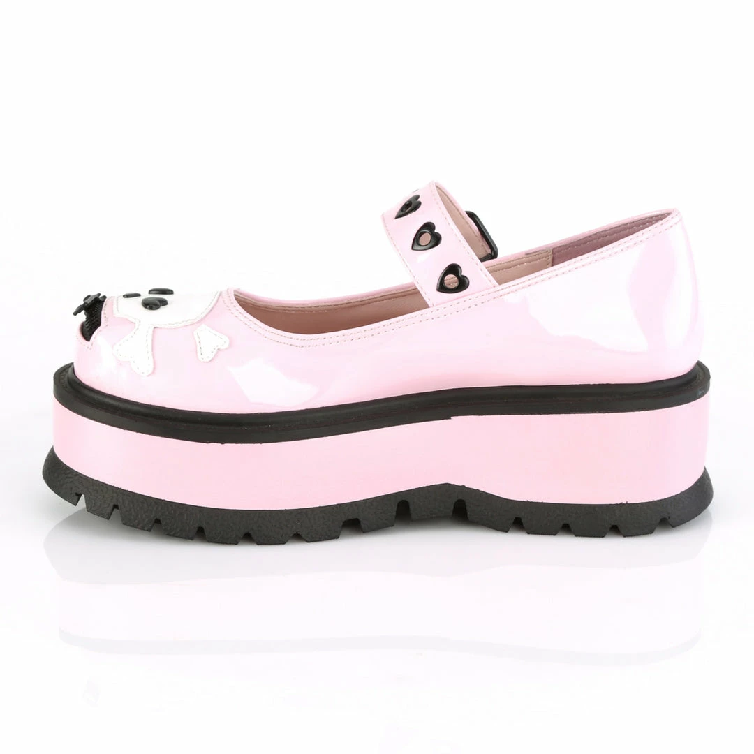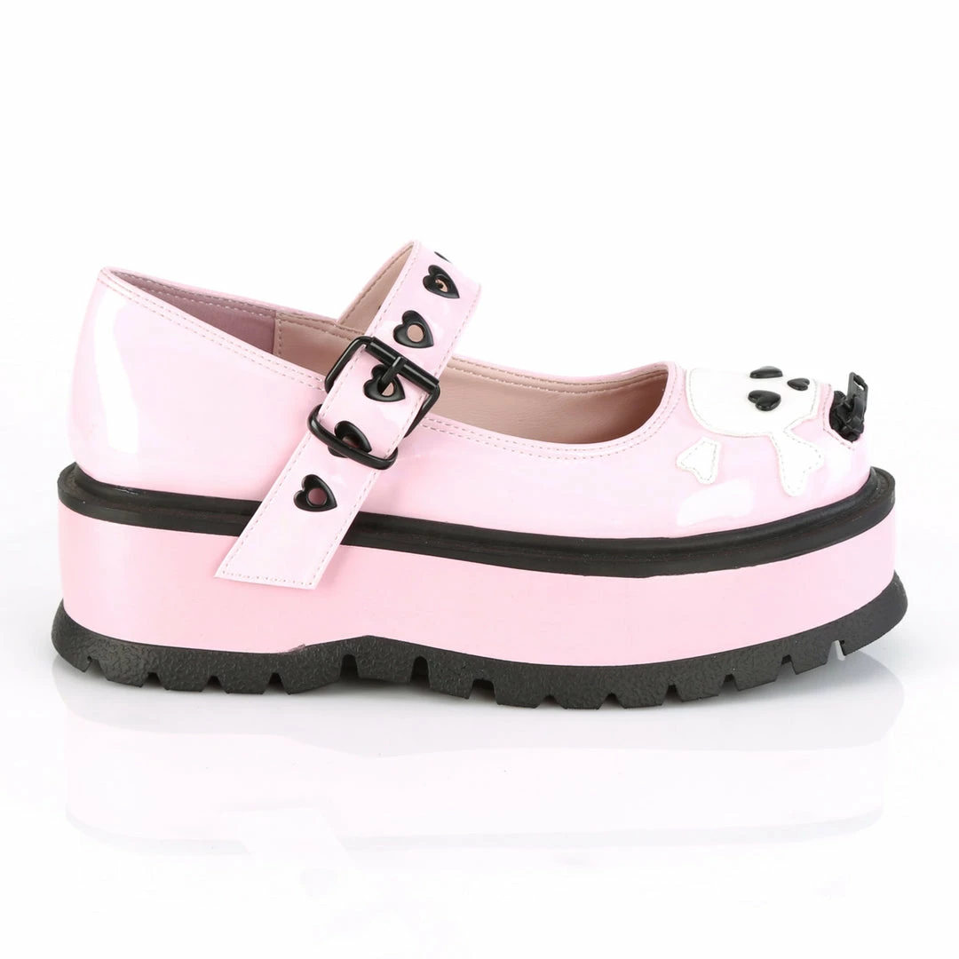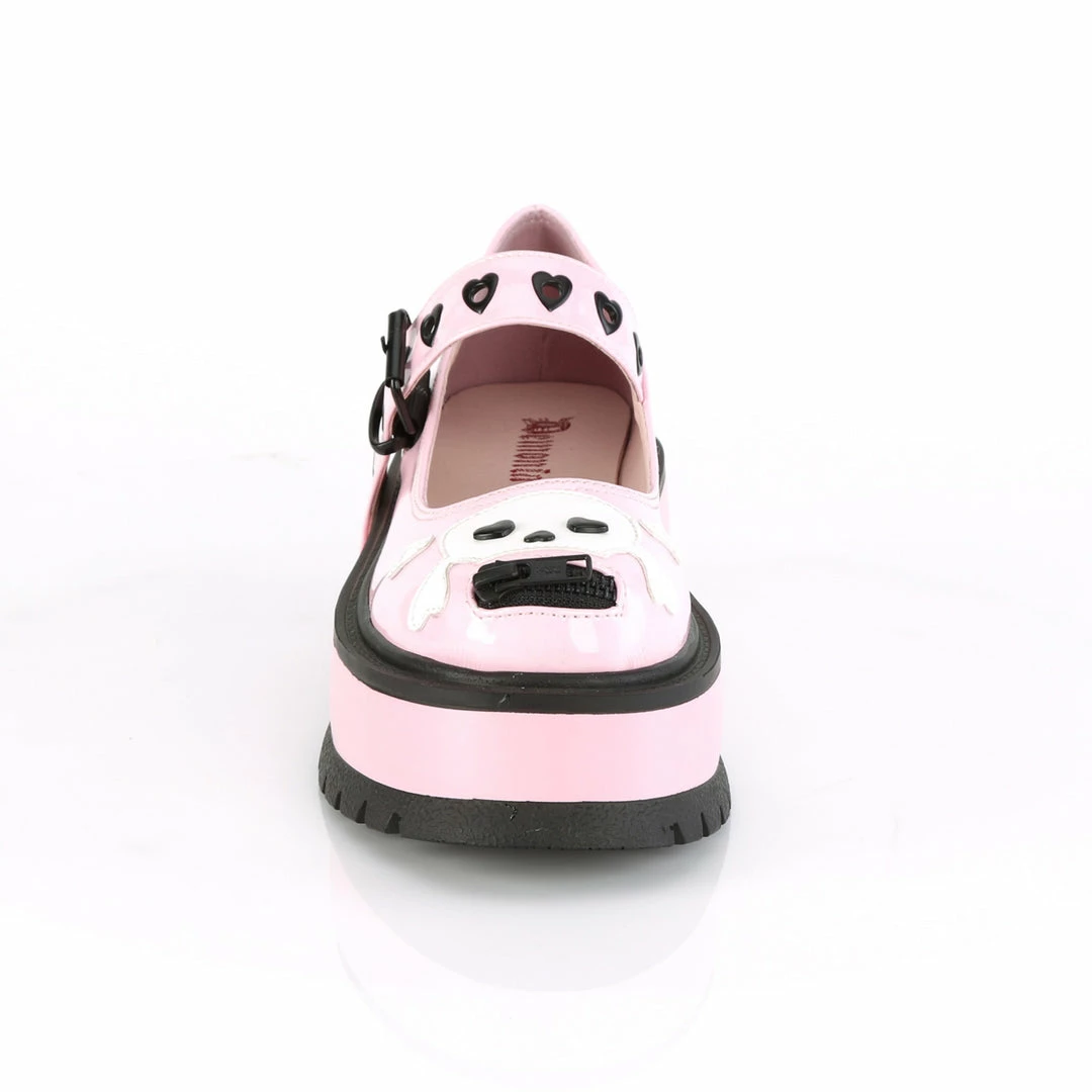 2″ Platform Maryjane Featurning Heart Eyelet Buckle Strap & Heart Studded Skull and Crossbone w/ Zip Closure Detail on Vamp