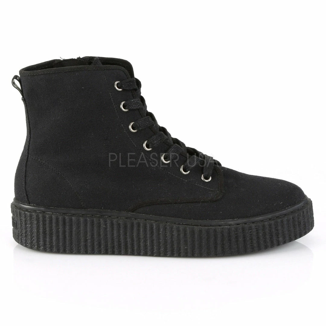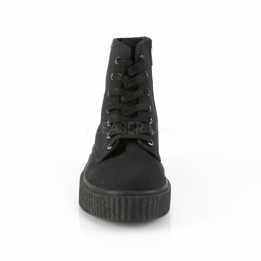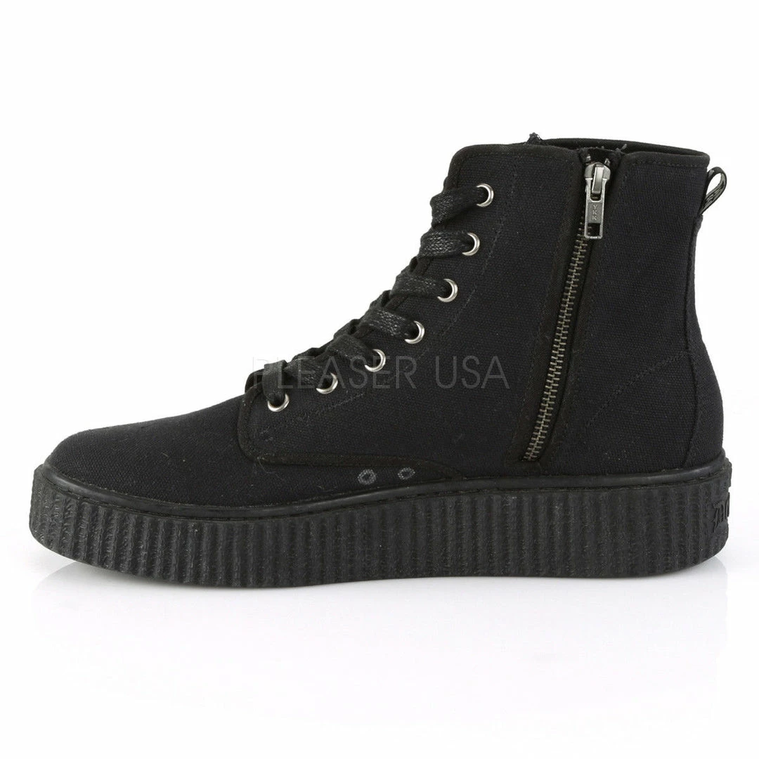 1 1/2″ (38mm) Platform Rubber Sole High Top Round Toe Lace-Up Front Creeper Sneaker, Full Inside Metal Zipper Closure
