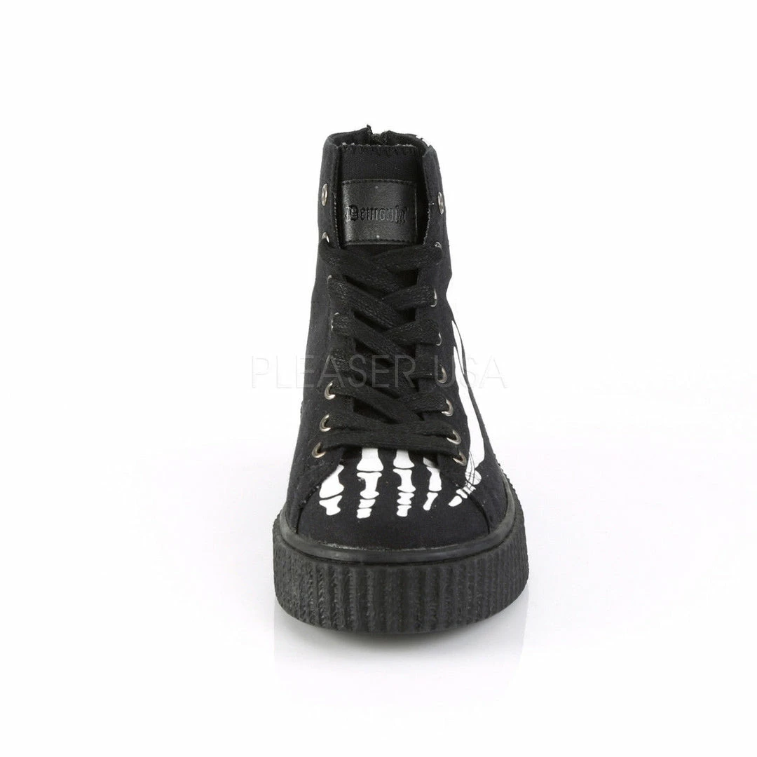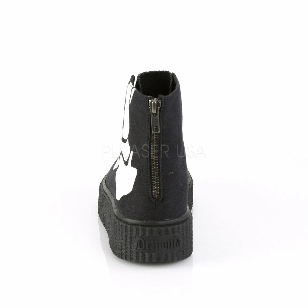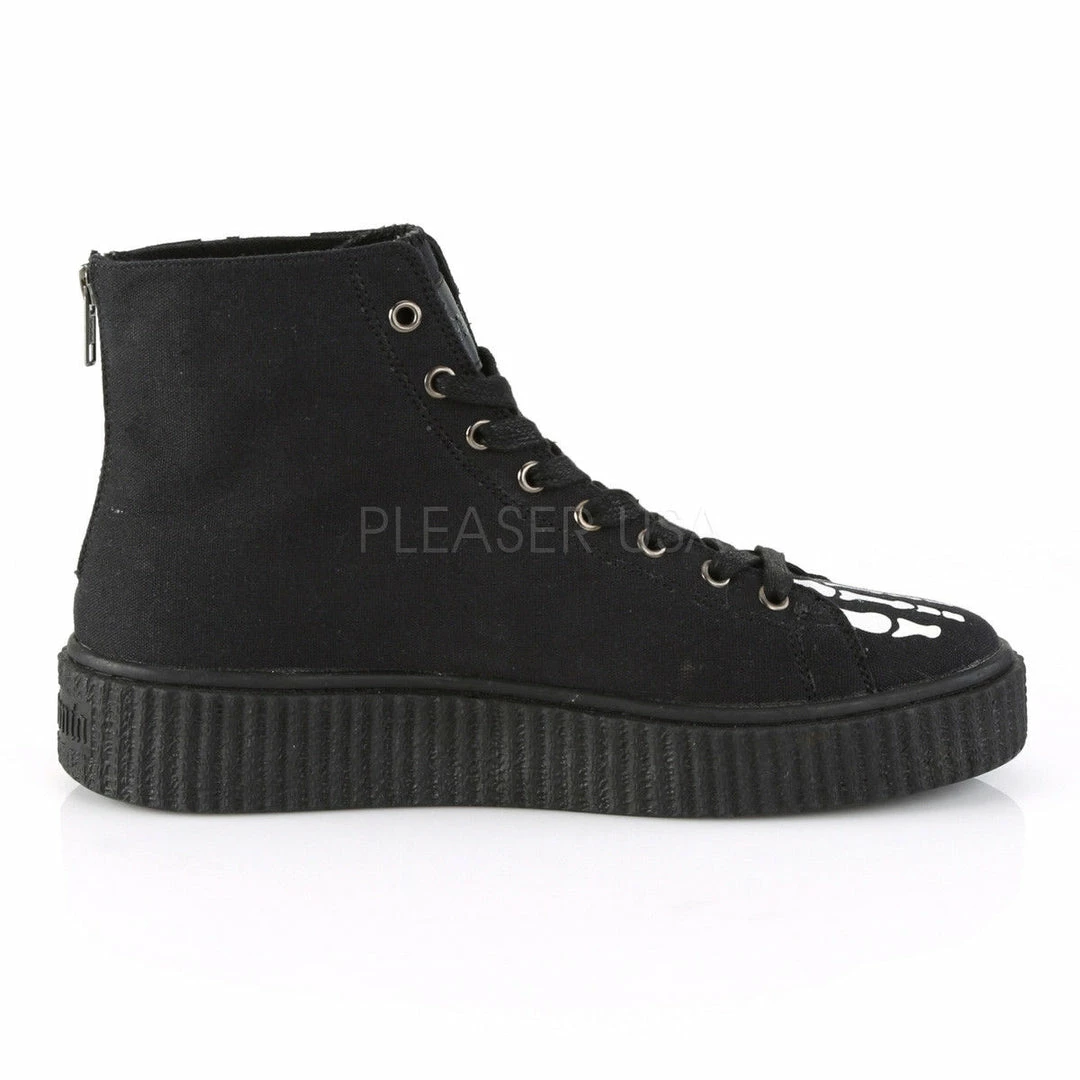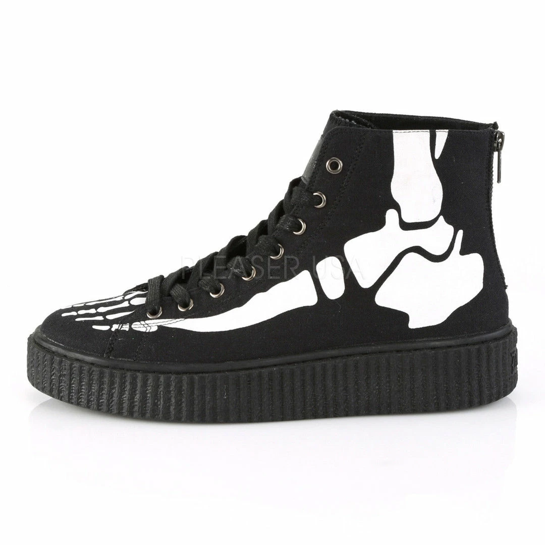 1 1/2″ (38mm) Platform Rubber Sole High Top Round Toe Lace-Up Front Creeper Sneaker Featuring Xray Bone Print, Full Back Metal Zipper Closure