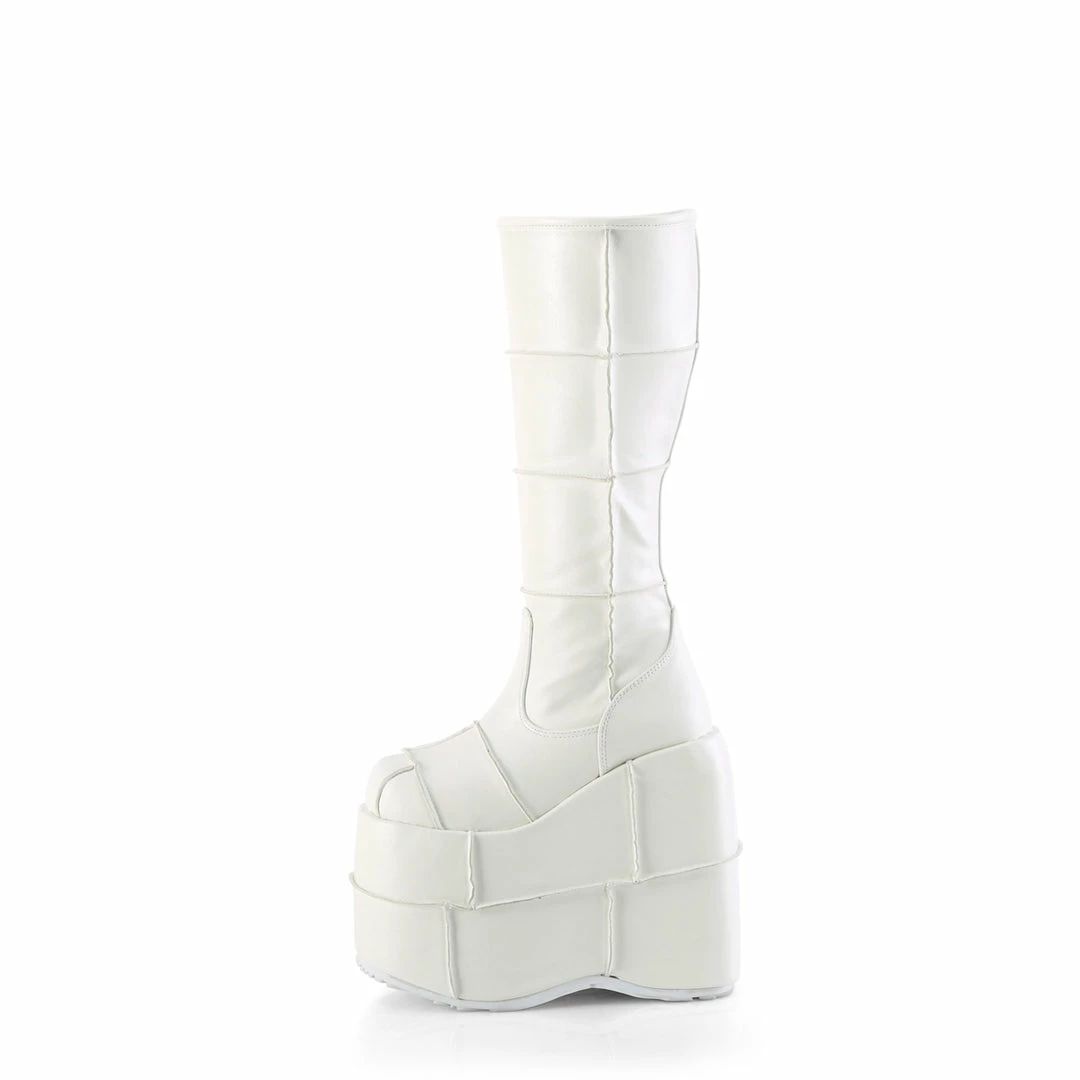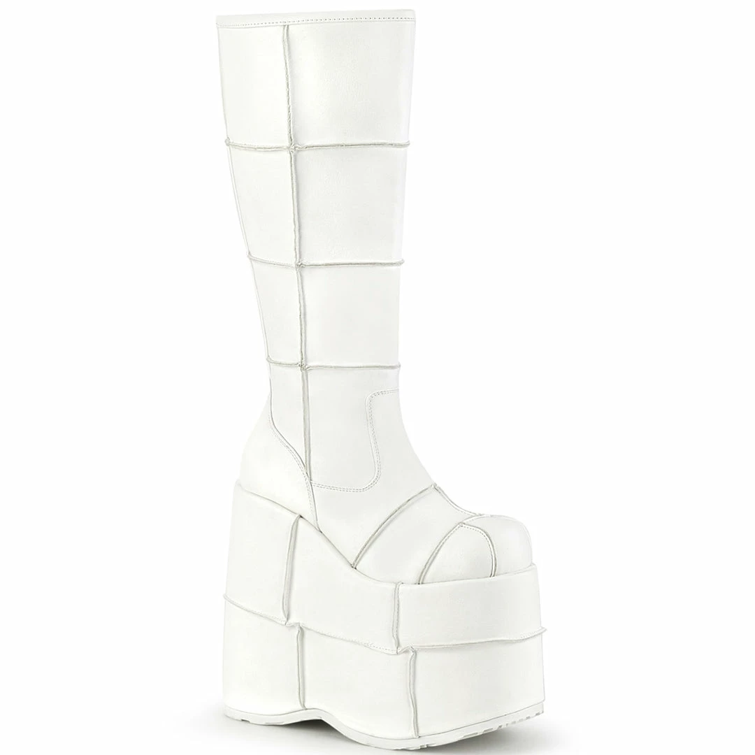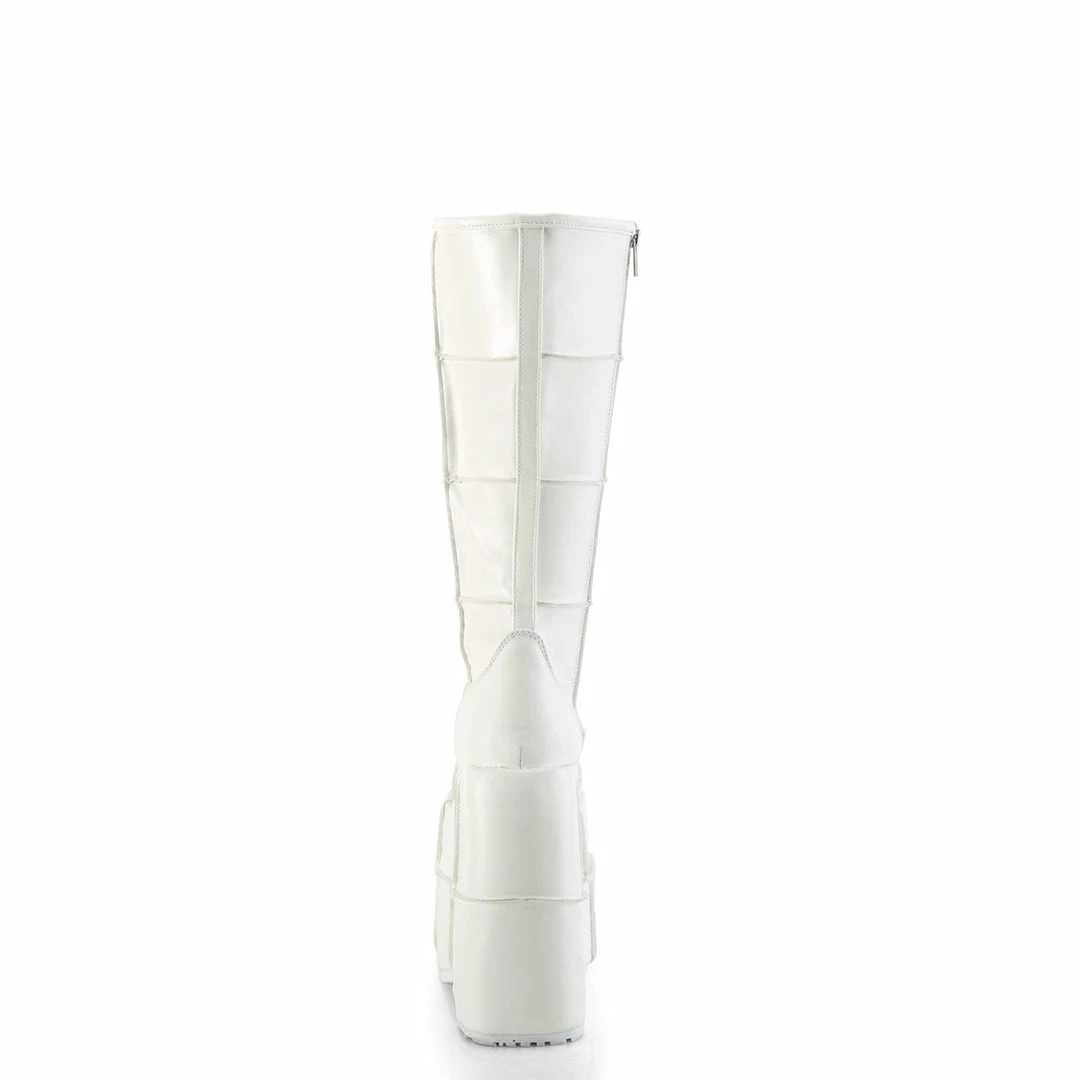 7″ (17.8cm) Platform Goth Cyber Gogo Punk Patched Knee Boot, Full Inner Side Zipper