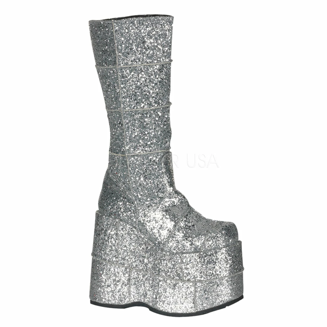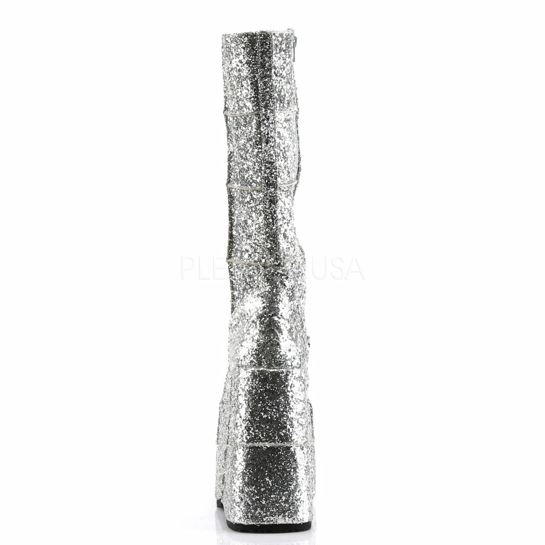 7″ (17.8cm) Platform Goth Cyber Gogo Punk Patched Knee Boot, Full Inner Side Zipper