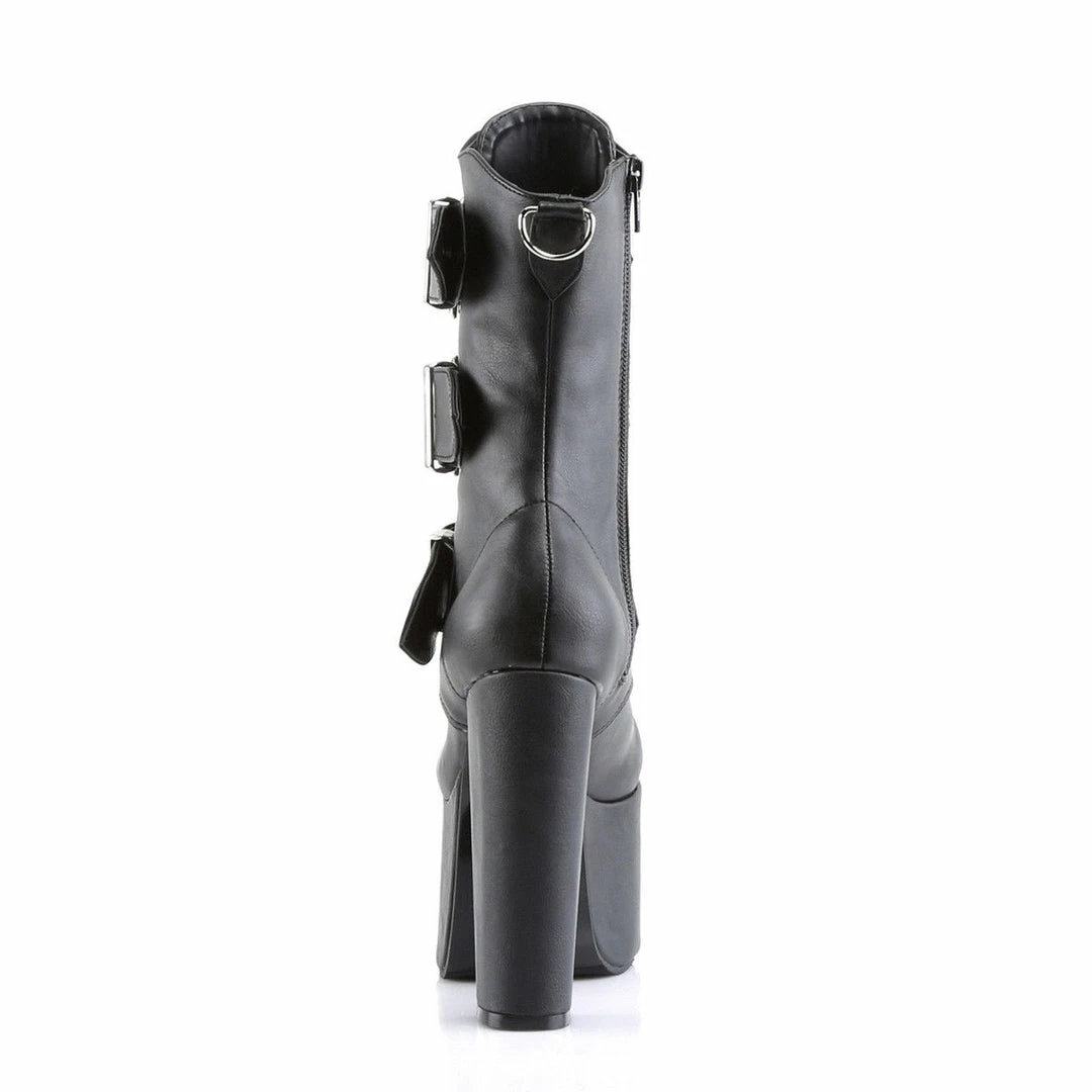 5 1/2″ (14cm) Heel, 3″ (7.6cm) PF Goth Punk Cyber Gogo Ankle Boot with 3 Buckles, Full Inner Side Zipper