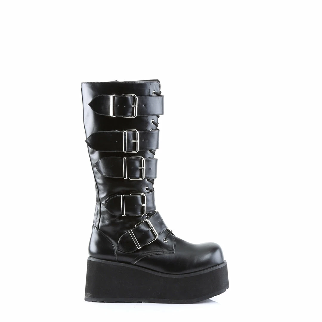 3 1/4″ (8.3cm) Platform Goth Punk Knee Boot with 5 Buckles and Full Inner Side Zipper