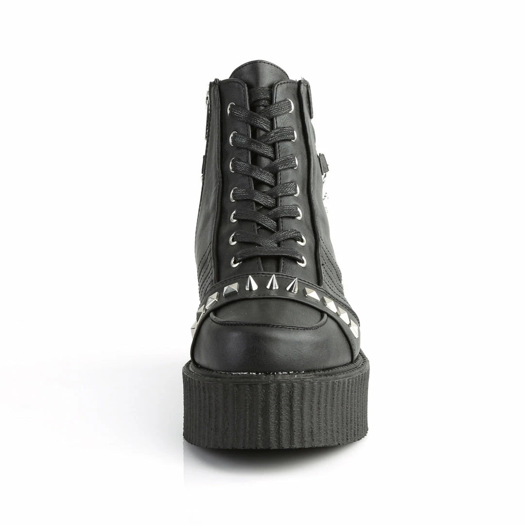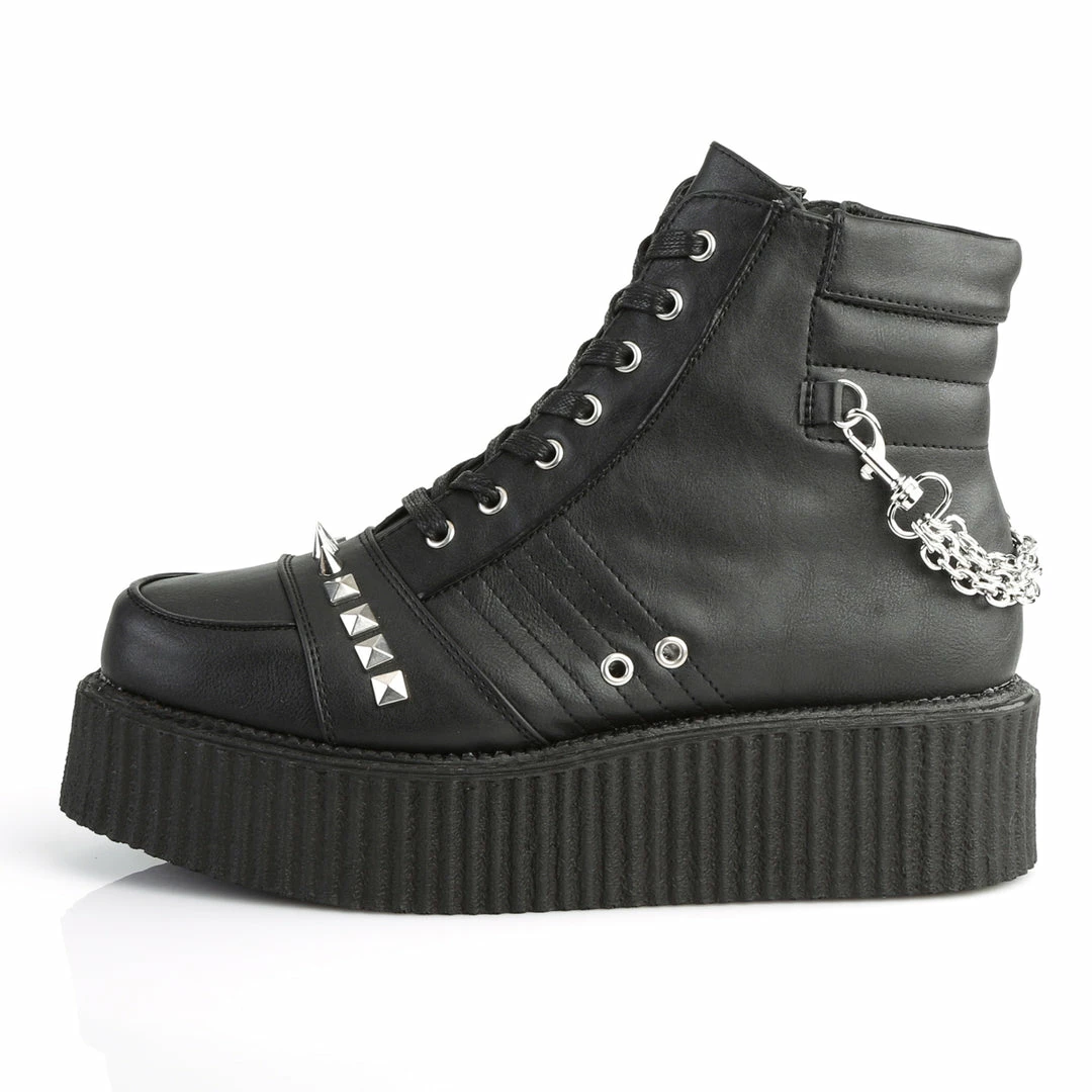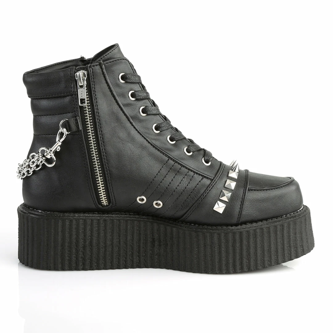 2″ (5.1cm) Platform Oxford Creeper Bootie w/Stud, Spike, & Chain Details & Exposed Inner Side Zipper