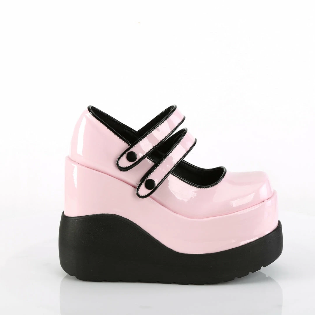 5″ (127mm) Wedge Platform Maryjane W/ Double Hook N’ Loop Straps, Contrast Piping & Buttons