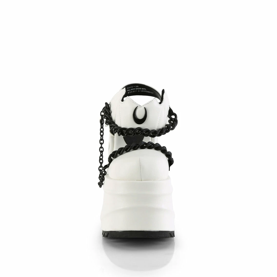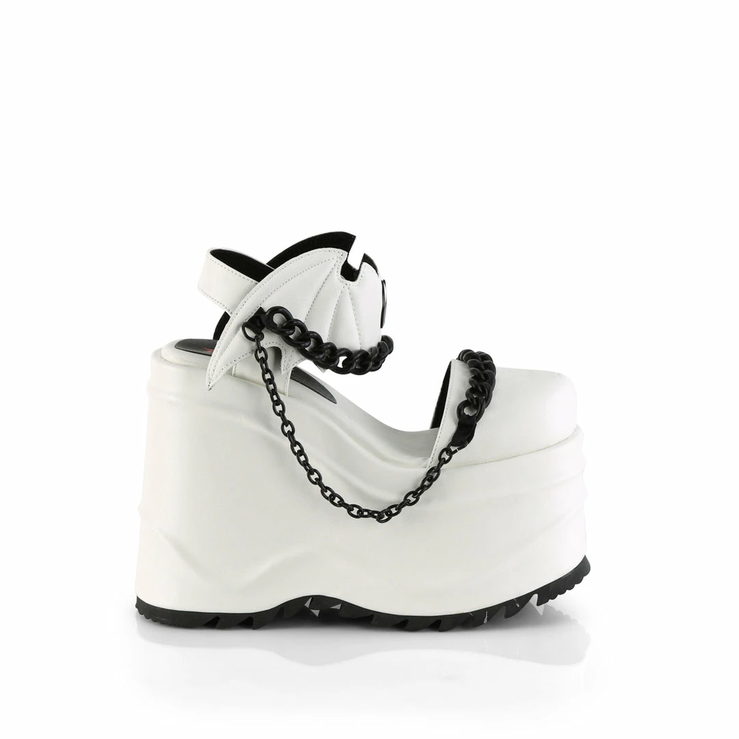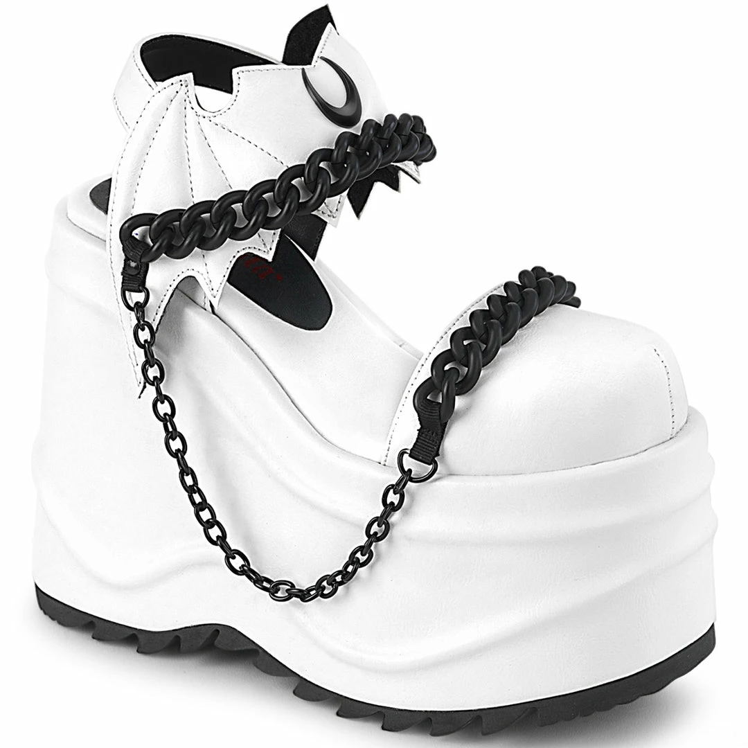 6″ (152mm) Wedge Platform Close Toe Ankle Strap Sandal Featuring Bat Shaped Hook & Loop Ankle Strap Closure, Moon & Chain Details