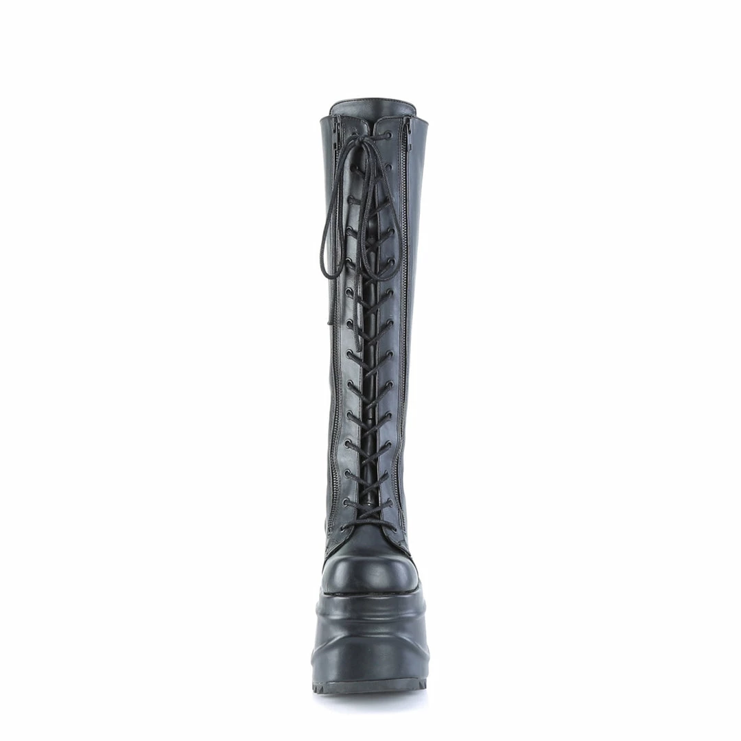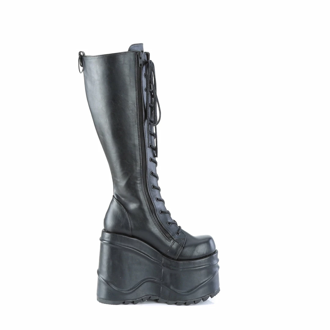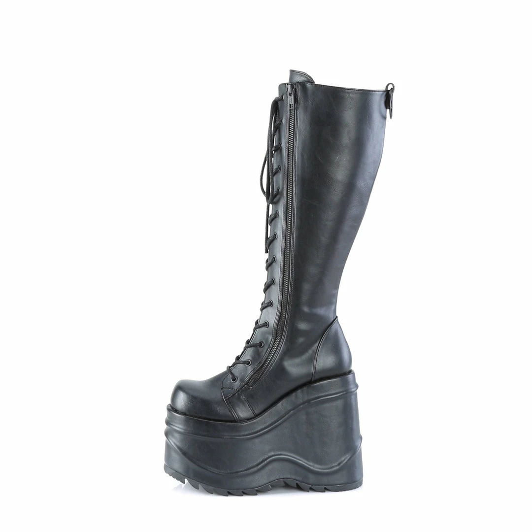 6″ (152mm) Wedge Platform Lace-Up Knee High Boot, Featuring Full-Length Double metal Zip Closure in the Front, Full Back Metal Zip Closure
