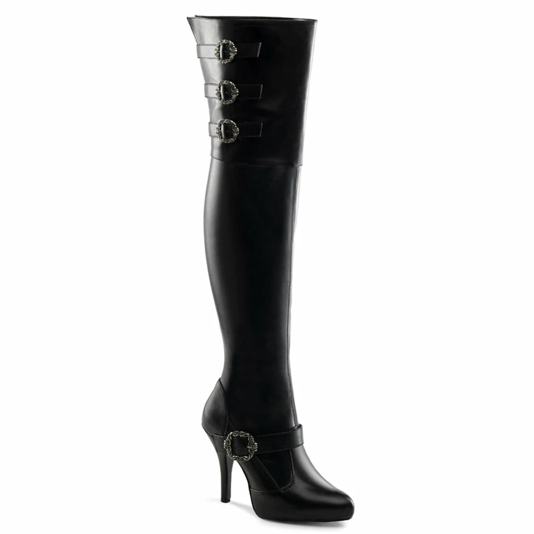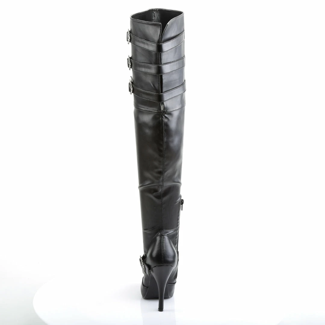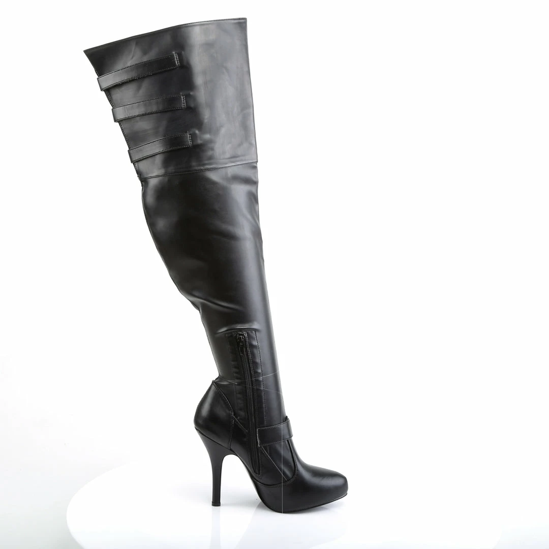 5″ (12.7cm) Heel, 1/2″ (1.3cm) Hidden Platform Wide Width Thigh High Boot, Featuring Octopus Shaped Buckles, Full Inner Side Zipper