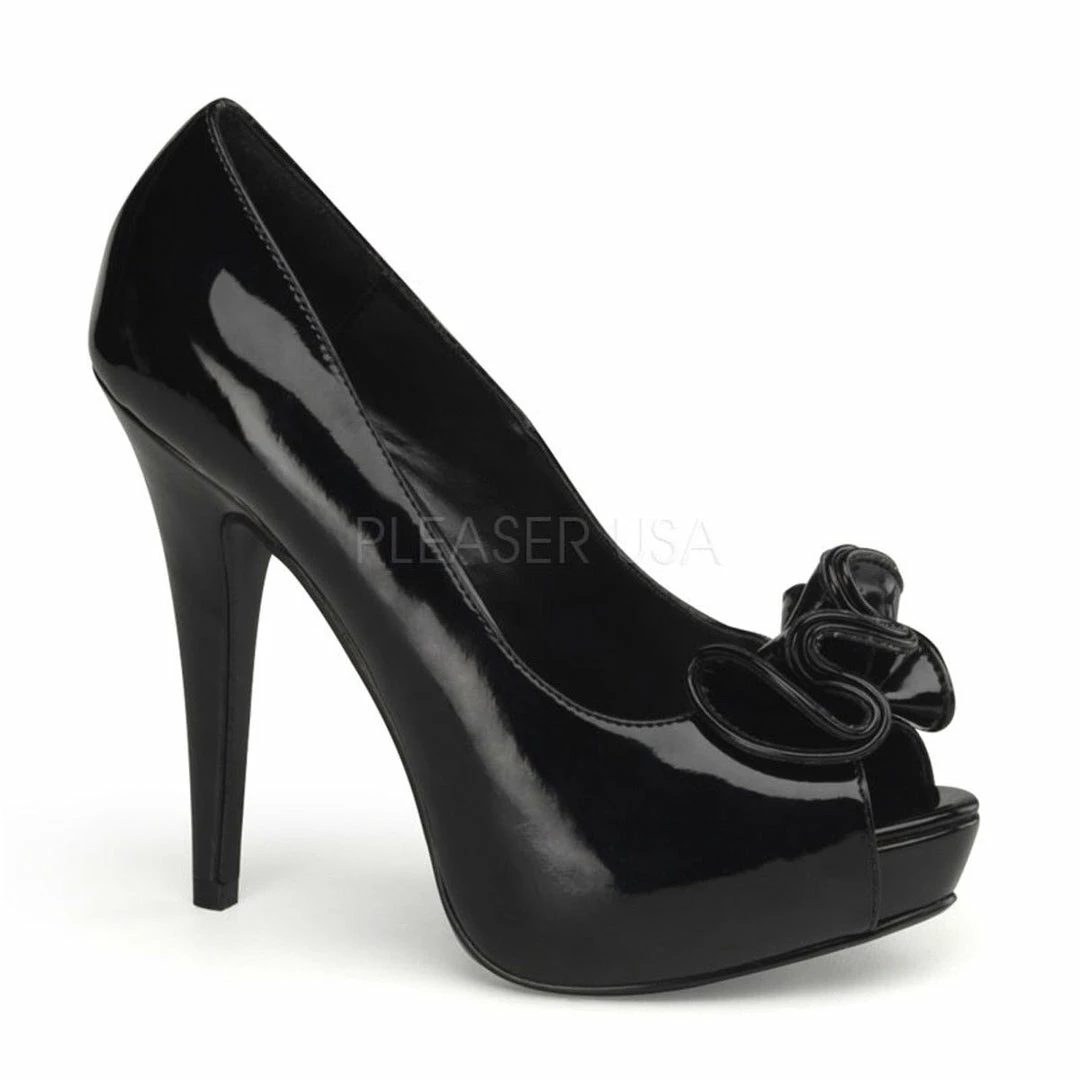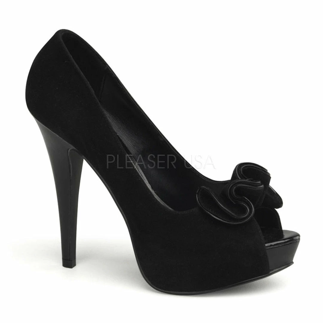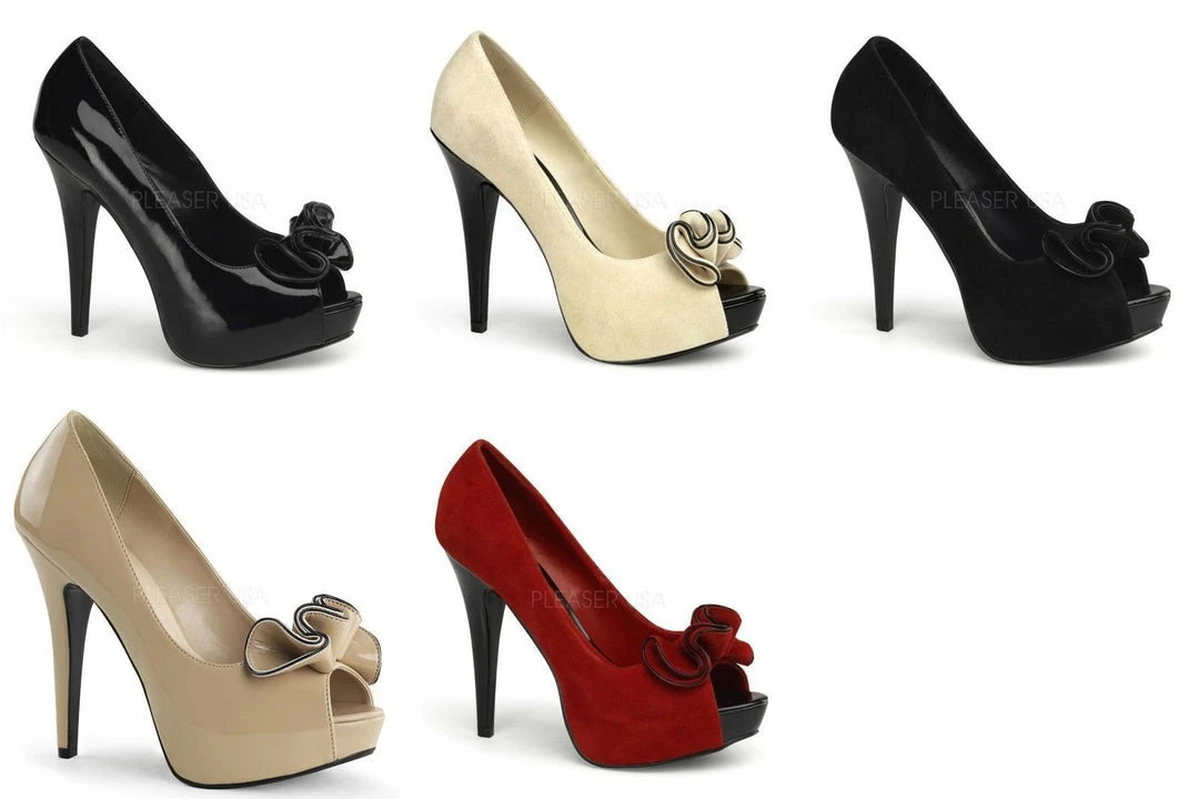 5″ (12.7cm) Heel, 1″ (2.5cm) Hidden Platform Peep Toe Platform Pump w/ Ruffle Detail at Toe