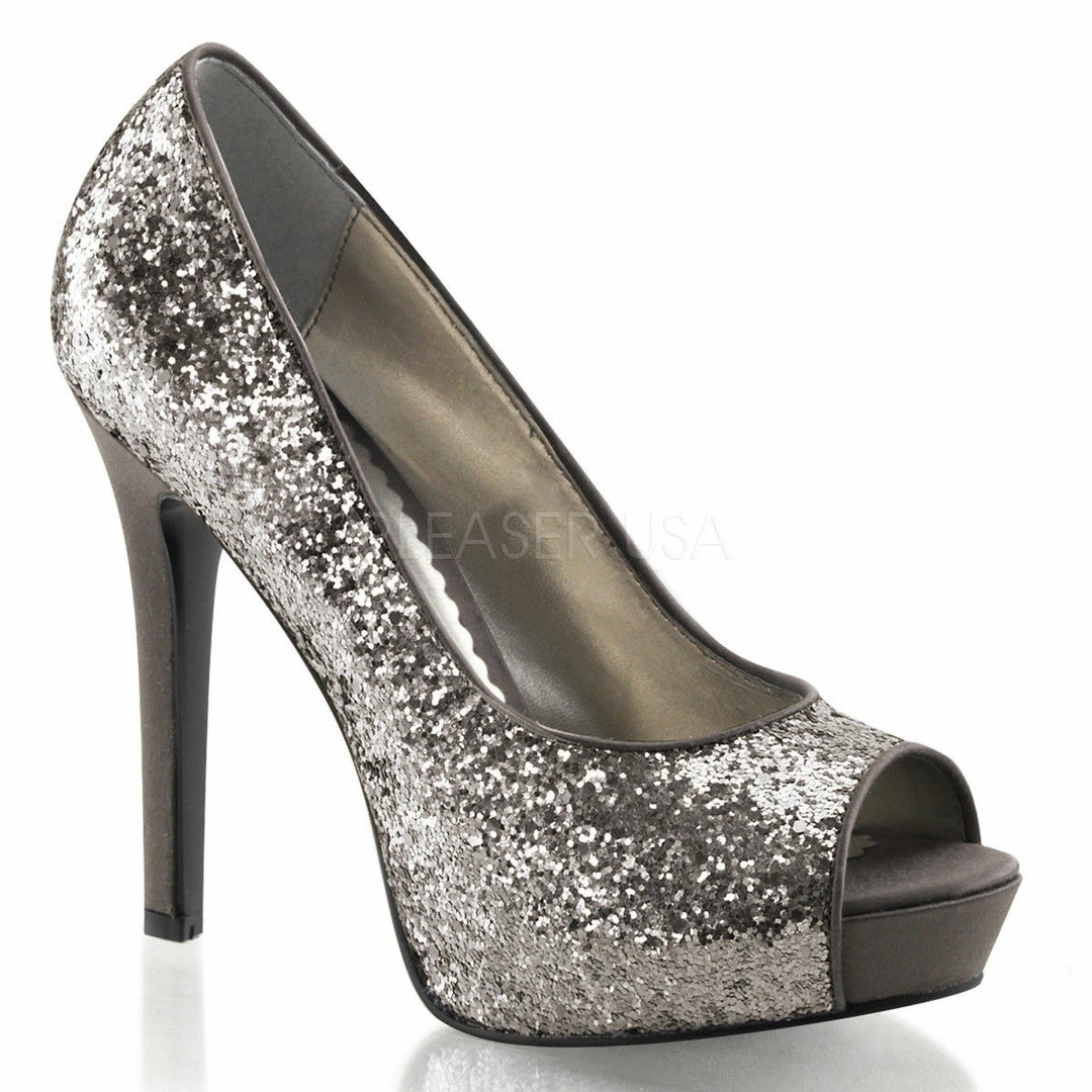 4 3/4″ (12.1cm) Heel, 1″ (2.5cm) Hidden Platform Open Toe Pump