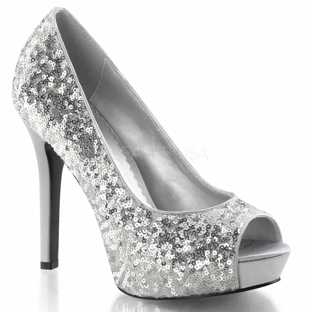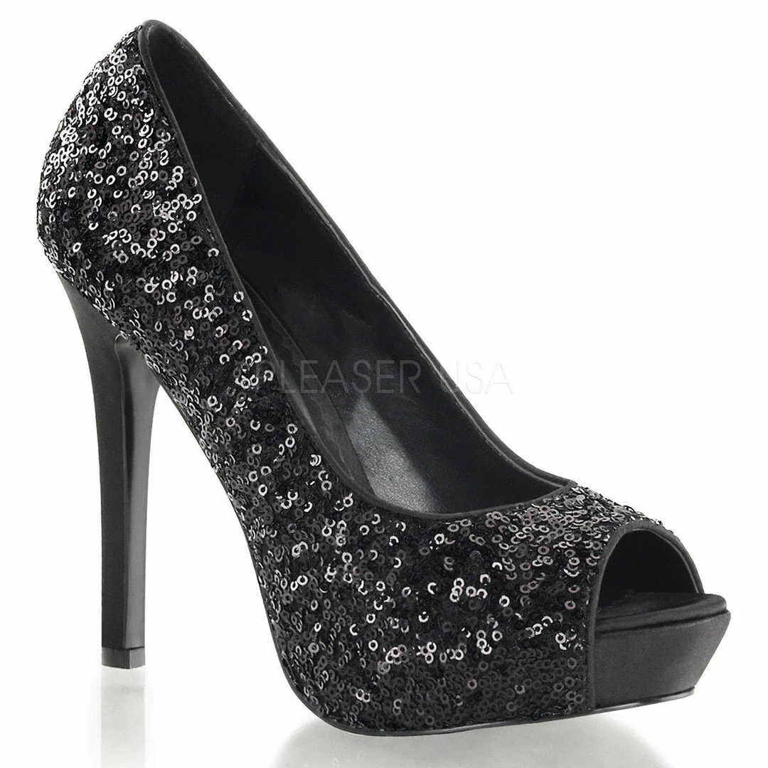 4 3/4″ (12.1cm) Heel, 1″ (2.5cm) Hidden Platform Open Toe Pump
