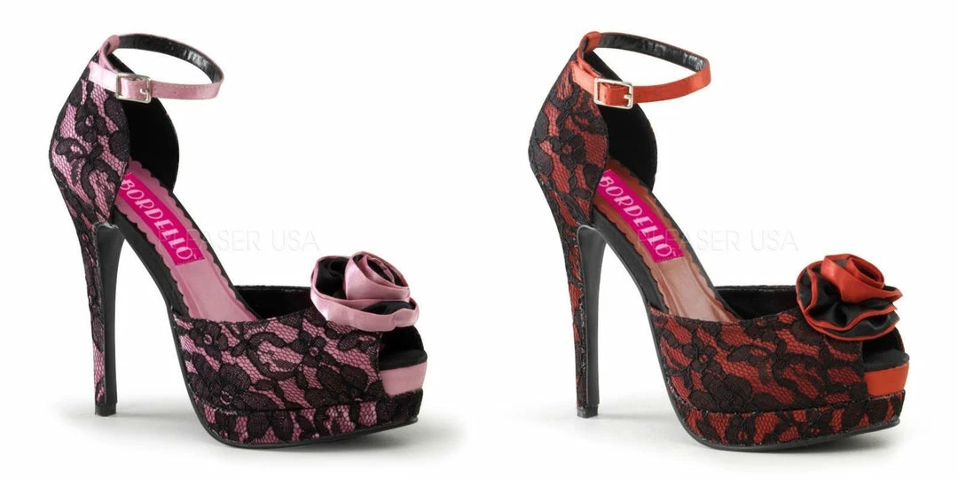 5 1/4″ (13.3cm) Heel, 1 1/2″(3.8cm) Platform Peep Toe Pump w/ Rose Design on Toe