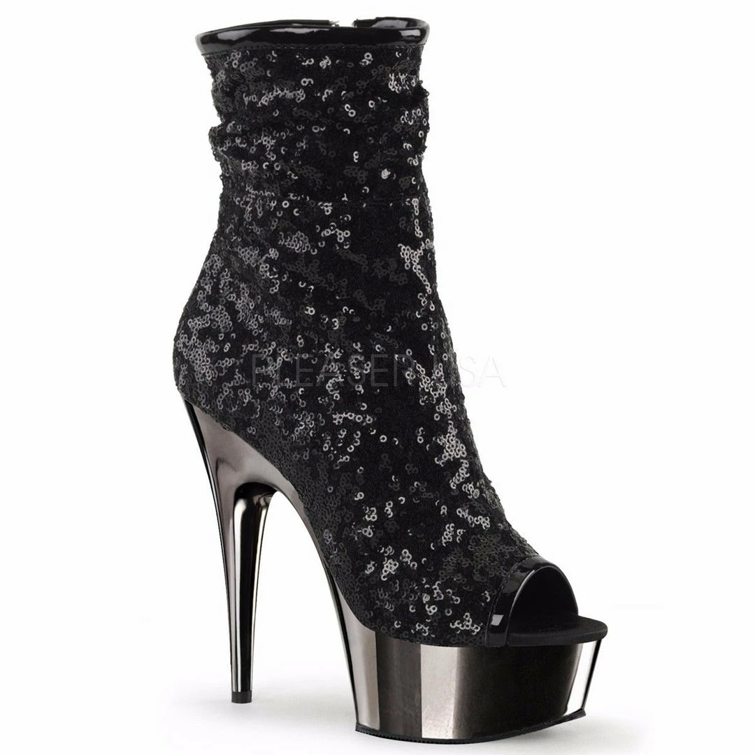 6″ (15.2cm) Stiletto Heel, 1 3/4″ (4.5cm) Platform Peep Toe Ruched Shaft Ankle Boot, Inside Zip Closure