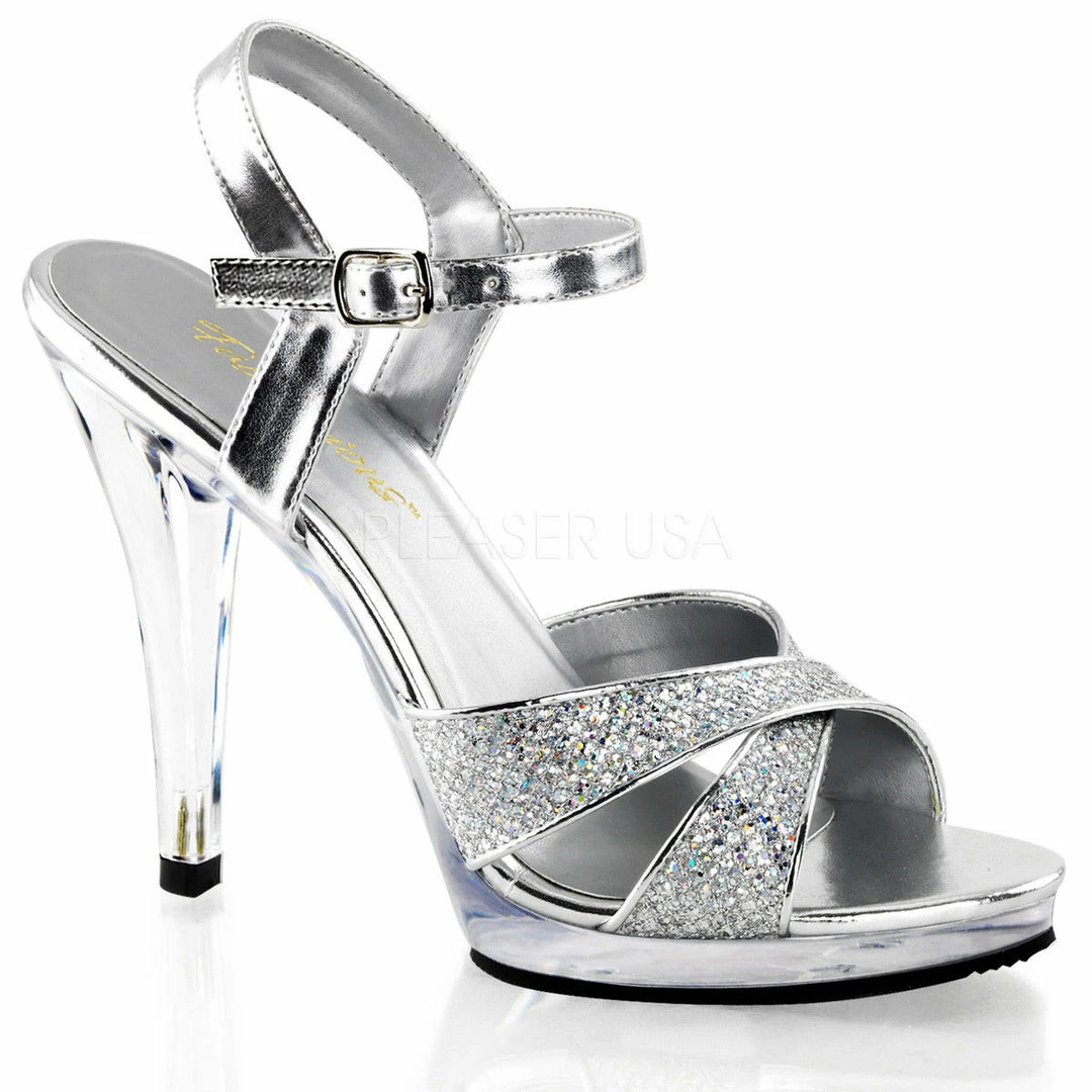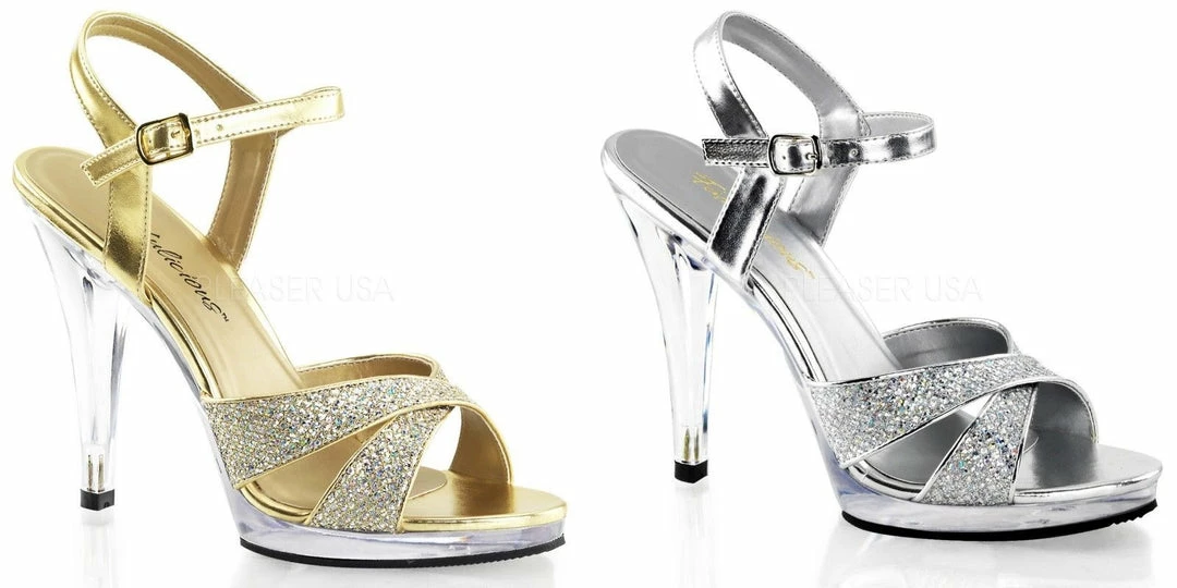 4 1/2″ (11.4cm) Heel, 1/2″ (1.3cm) Platform Criss Cross Ankle Strap Sandal