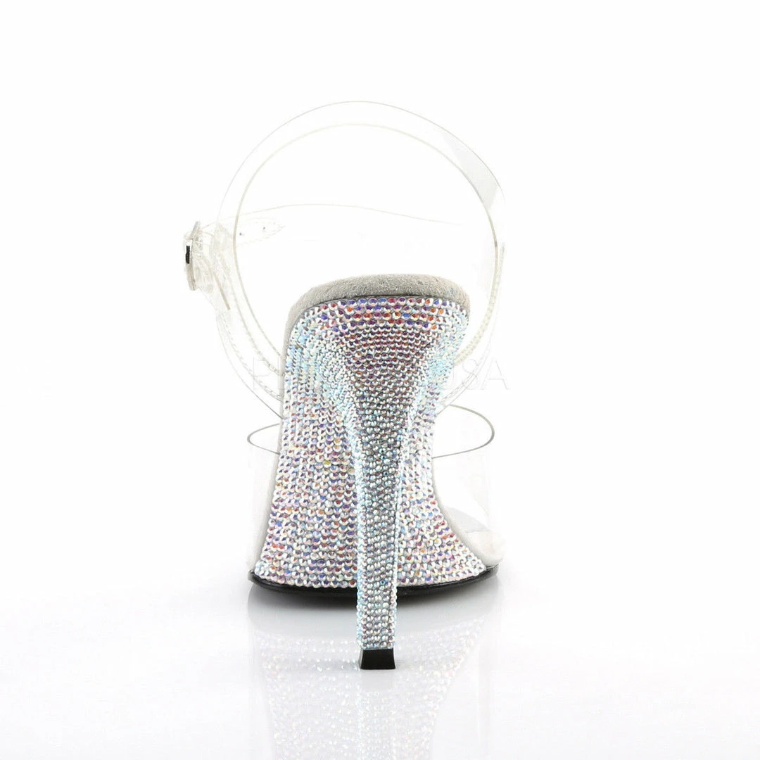 4 1/2″ (11.4cm) Heel Ankle Strap Sandal Featuring Rhinestones Encrusted on the Entire Bottom