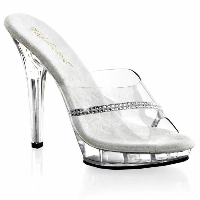 5″ (12.7cm) Heel, 3/4″ (1.9cm) Platform Slide Featuring Rinestone Band
