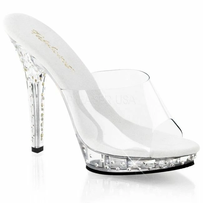 5″ (12.7cm) Heel, 3/4″ (1.9cm) Platform Slide Featuring Rhinestones Studded on the Heel and Platform Bottom