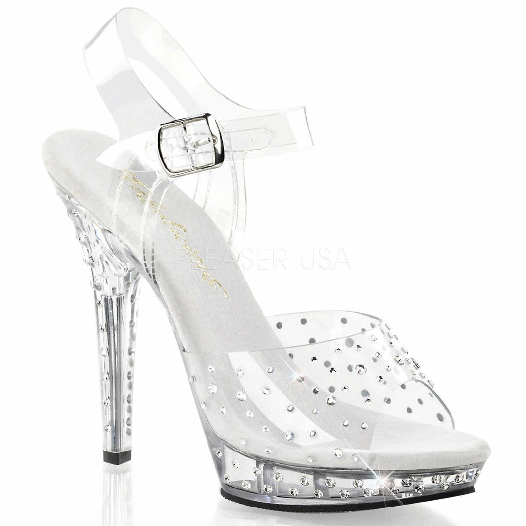5″ (12.7cm) Heel, 3/4″ (1.9cm) Platform Ankle Strap Sandal Featuring Rhinestones Studded Vamp