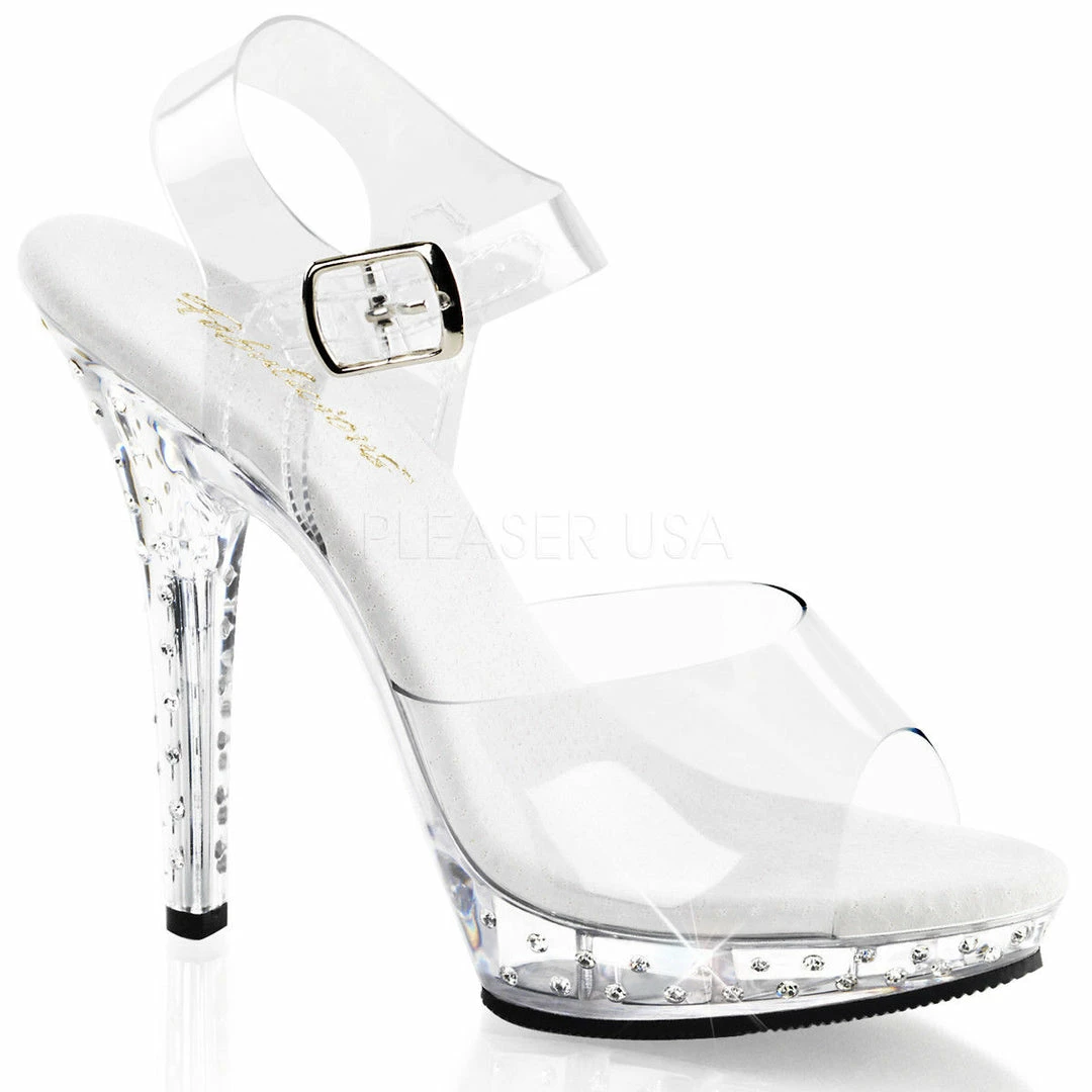 5″ (12.7cm) Heel, 3/4″ (1.9cm) Platform Ankle Strap Sandal Featuring Rhinestones Studded on the Heel and Platform Bottom