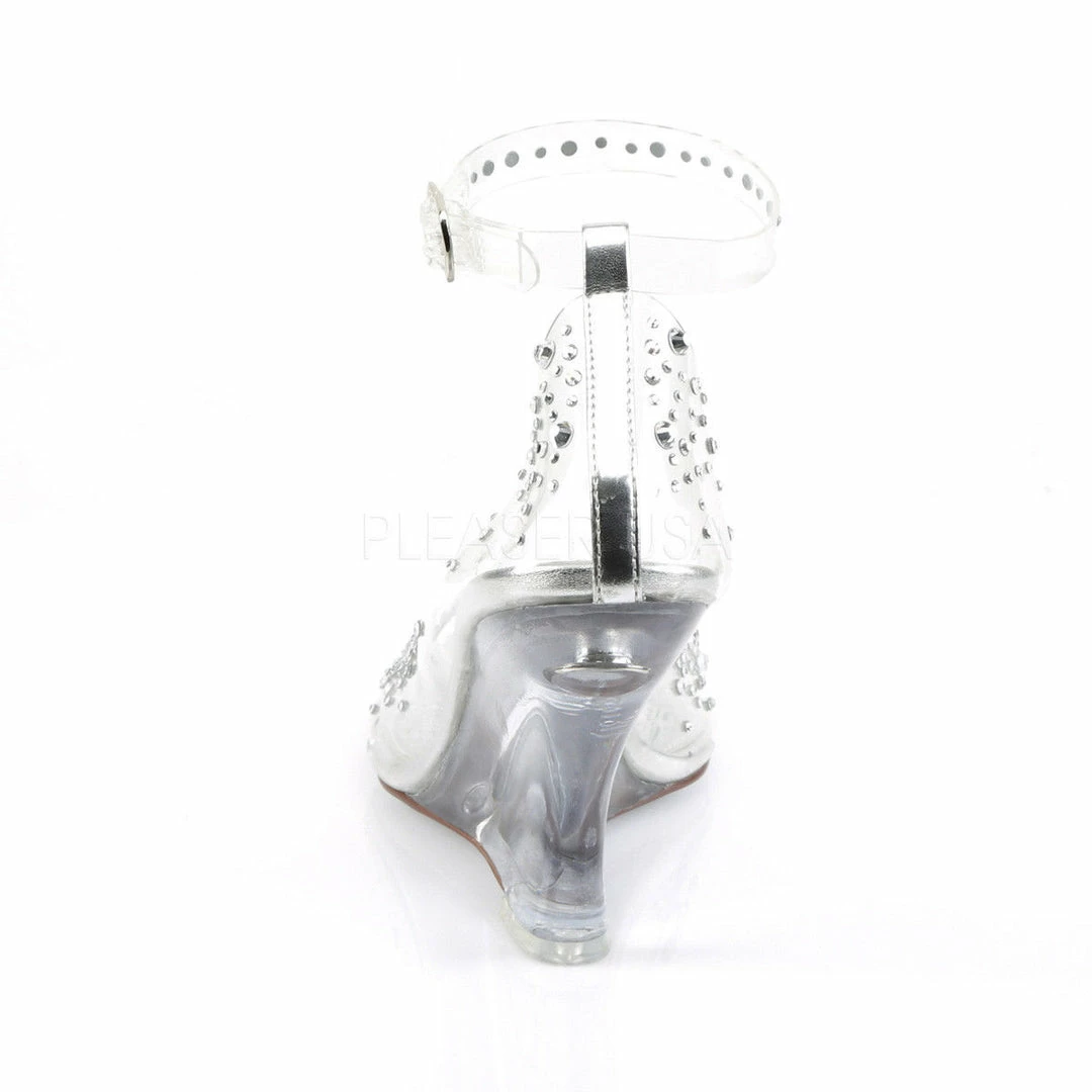 4″ (10.2cm) Open Toe Ankle Strape D’Orsay Wedge Sandal with Rhinestones