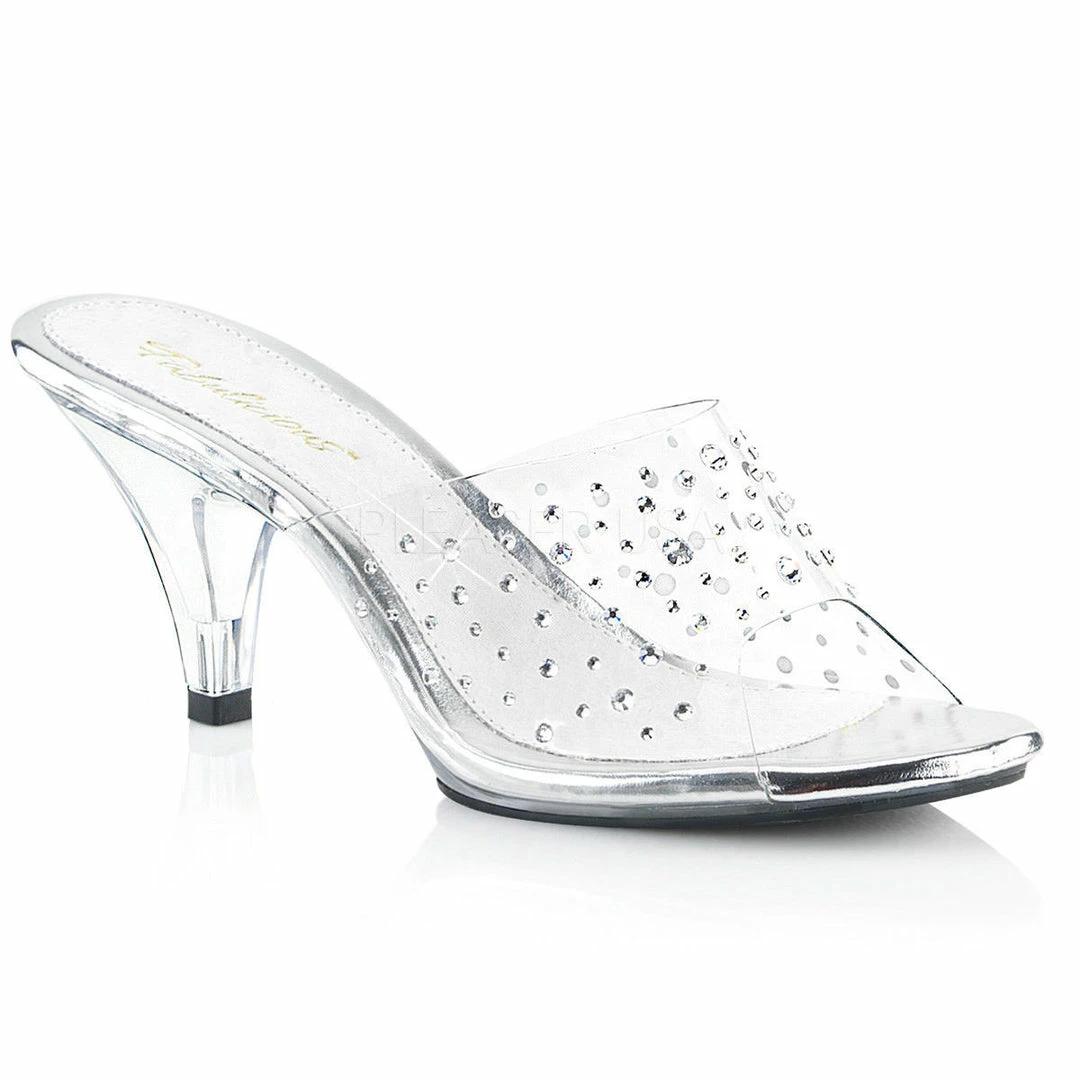 3″ (7.6cm) Heel, 1/8″ (0.3cm) Platform Slide Featuring Rhinestone Embedded on Vamp