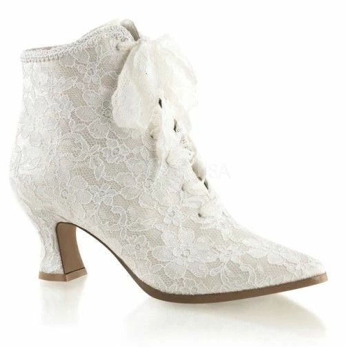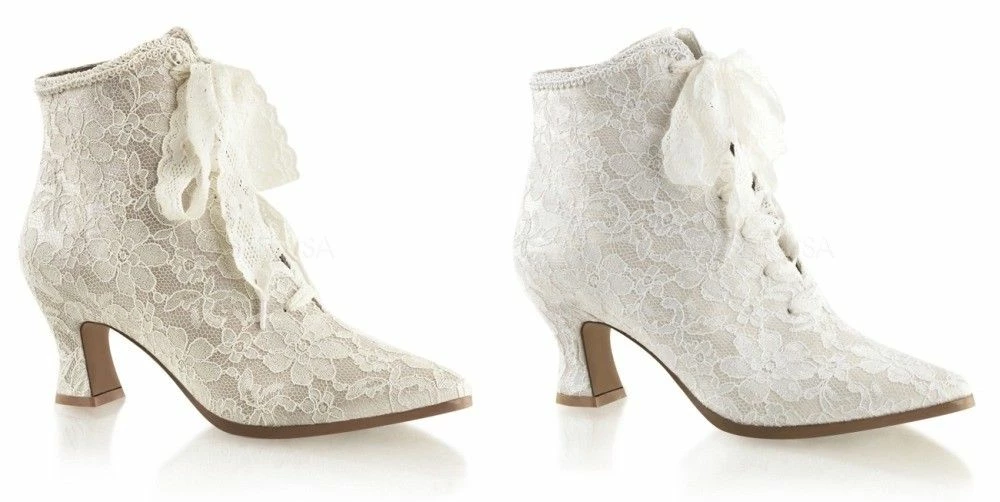 2 3/4″ (7cm) Flaired Heel Lace Up Lace Overlay Ankle Bootie with Ribbon Bow TieΒ