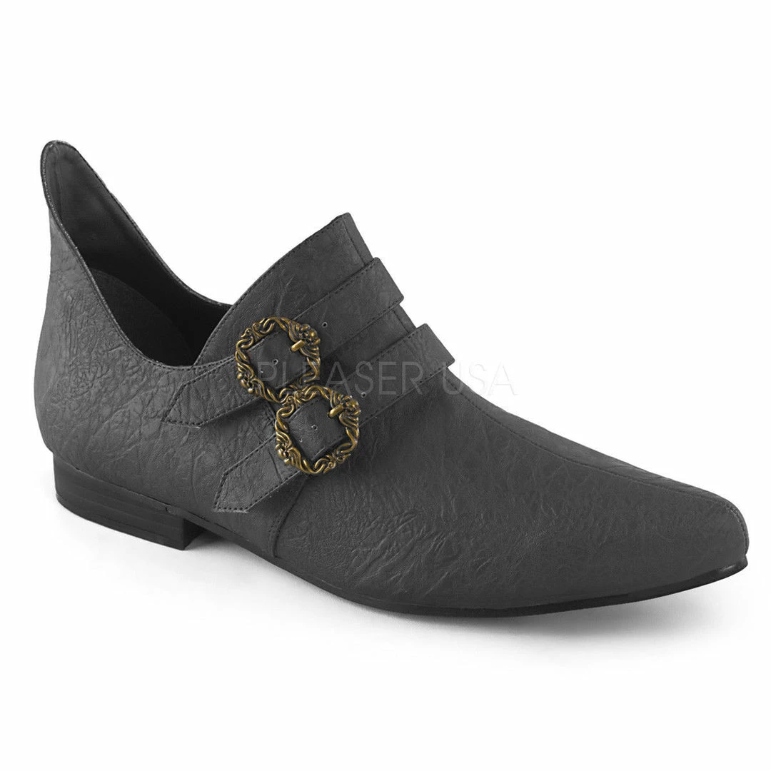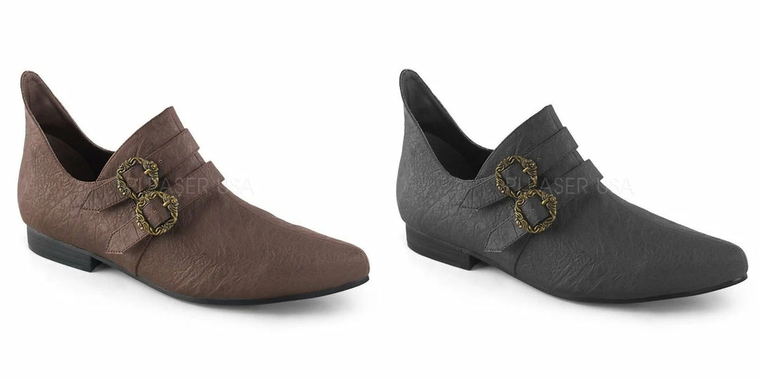 1″ Heel Pointed Toe Renaissance Shoe w/ Double Buckle Straps