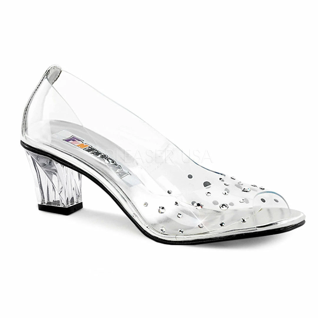 2″ (5.1cm) Heel Clear Lucite Peep Toe Pump with Rhinestone Embellishments on Front Vamp and Heel